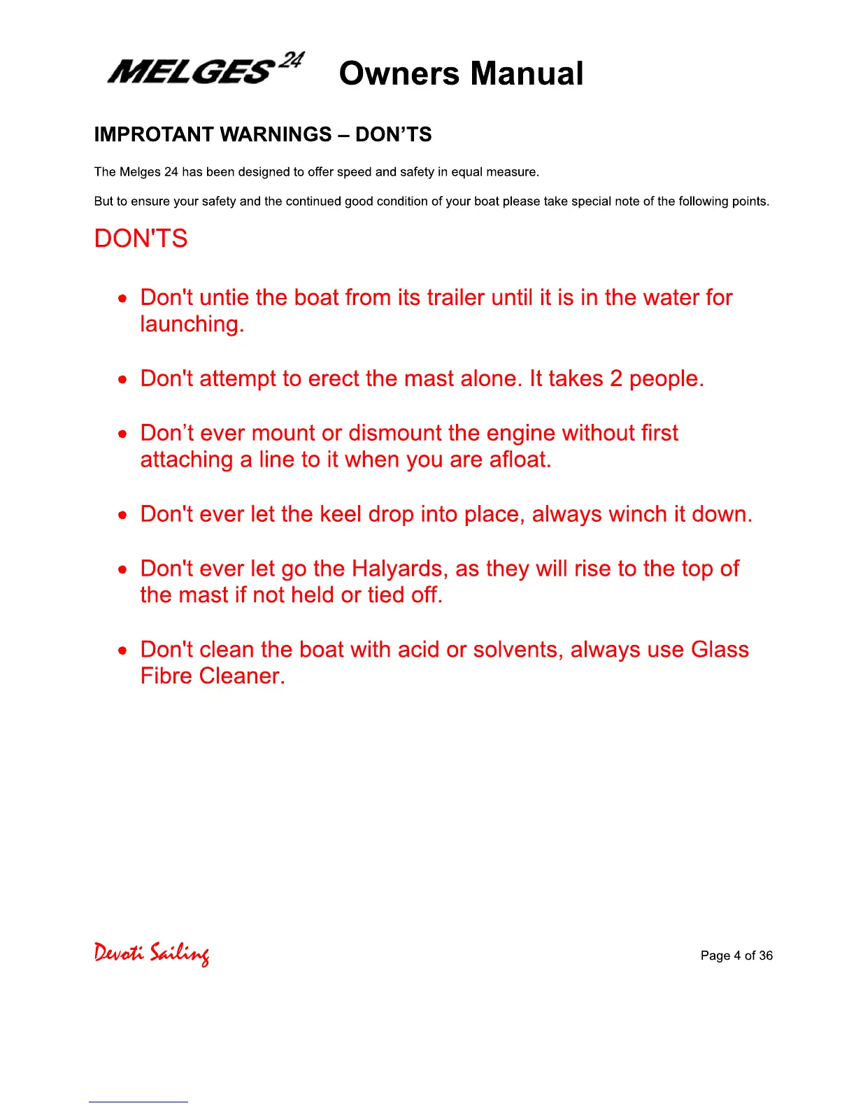 Devoti Sailing Melges 24 - Melges 24 Important Warnings - Donts