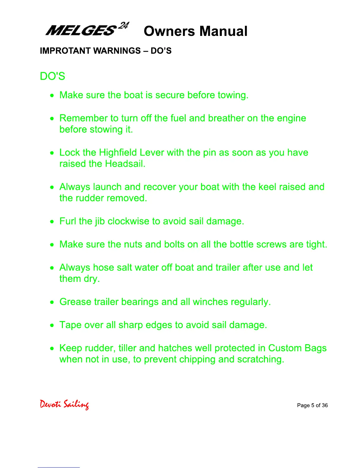 Devoti Sailing Melges 24 - Melges 24 Important Warnings - Dos