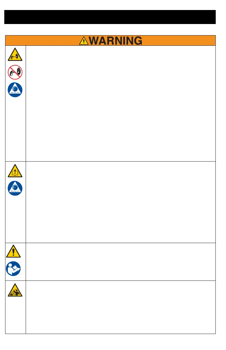 while spraying, follow the Pressure Relief Procedure for turning off the unit and relieving