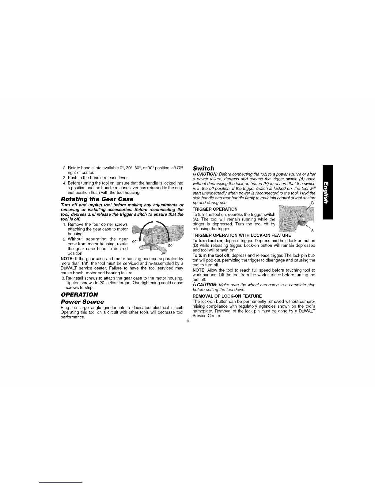 4.Beforeturningthetoolon,ensurethatthehandleislockedinto