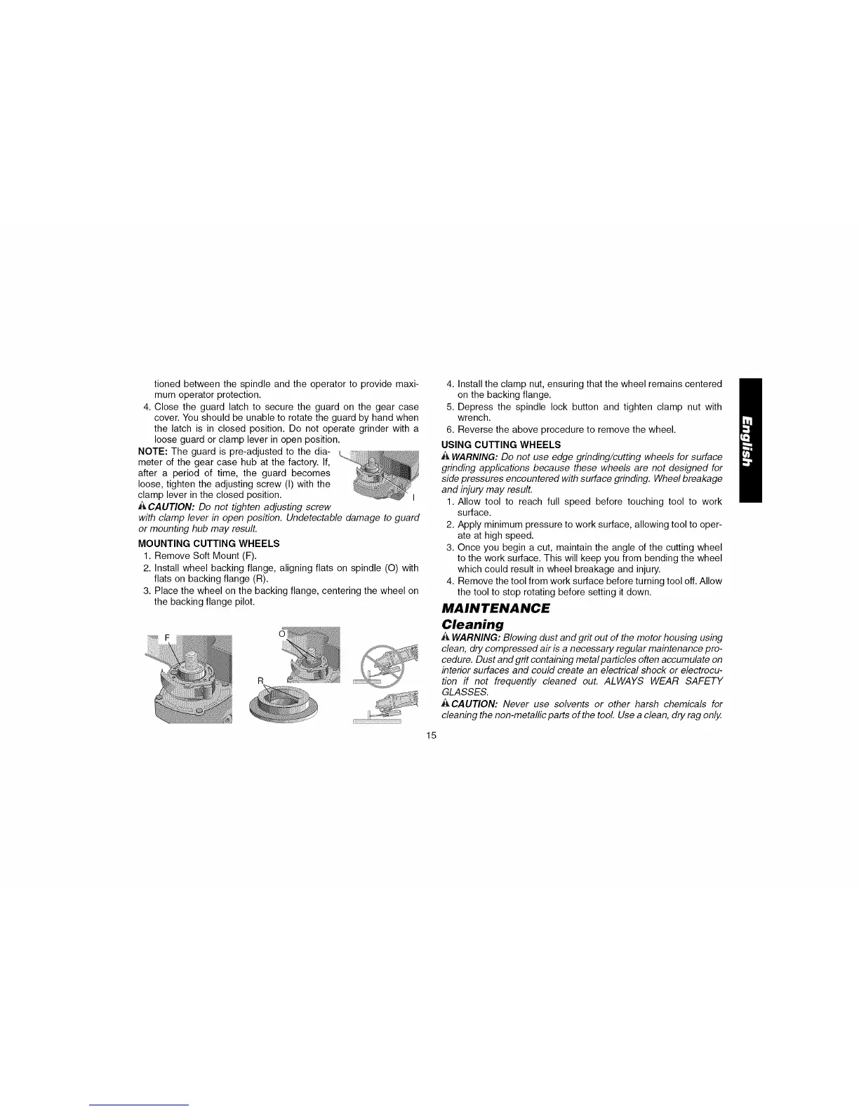A WARNING: Do not use edge grinding/cutting wheels for surface
