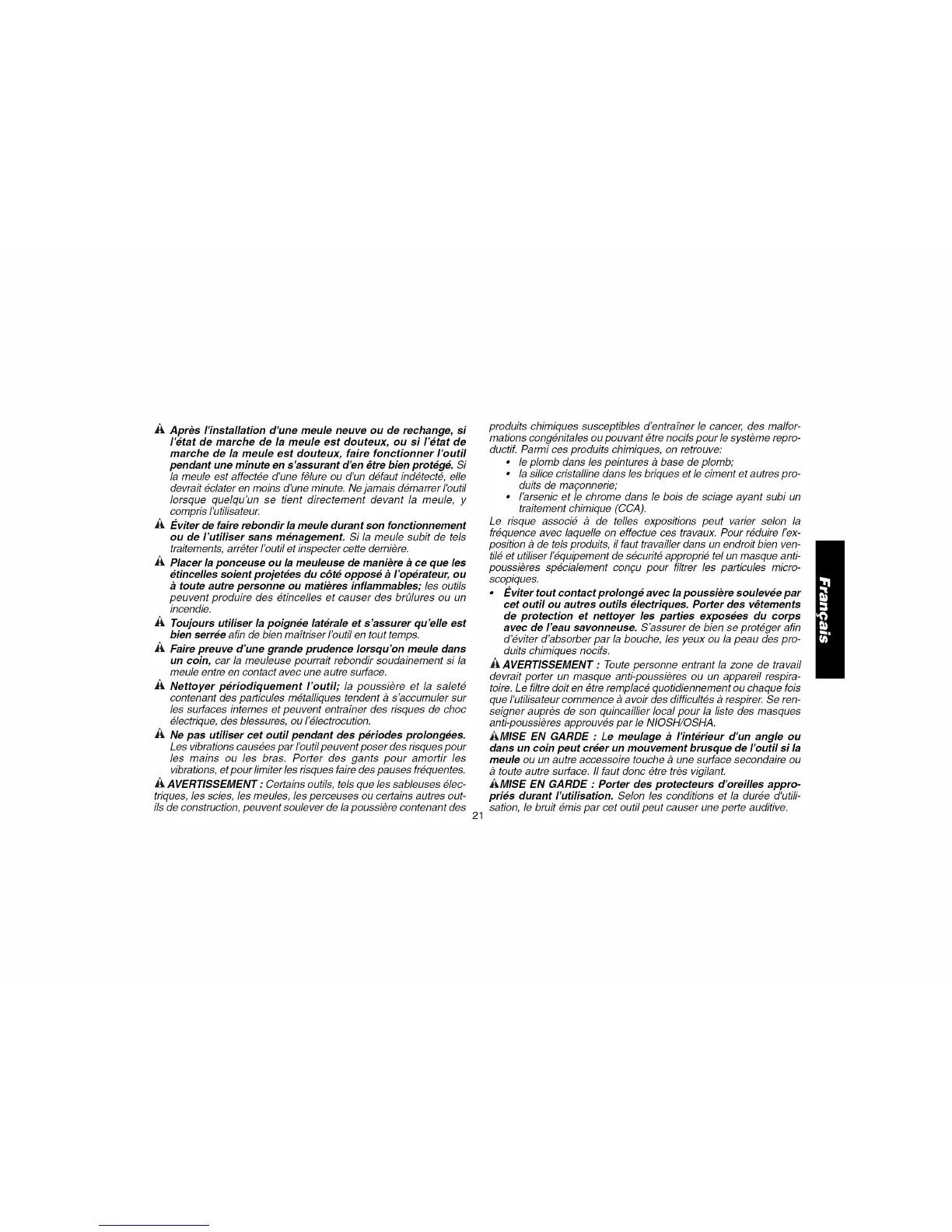 _, Faire preuve d'une grande prudence Iorsqu'on meule clans