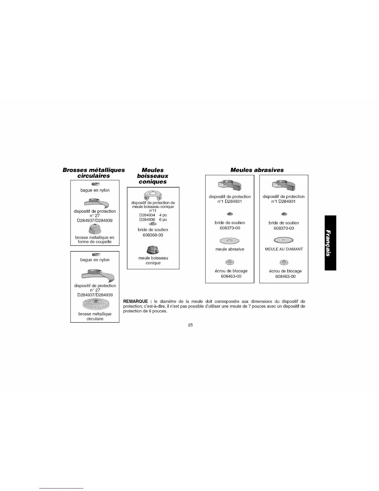 protection; c'est-&-dire, il n'est pas possible d'utiliser une meule de 7 pouces avec un dispositif de