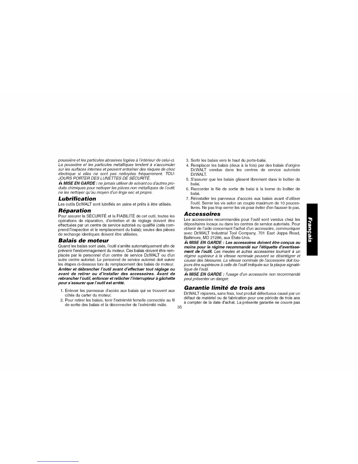 Les outils DEWALT sont lubrifi6s en usine et pr6ts & _tre utilis6s.