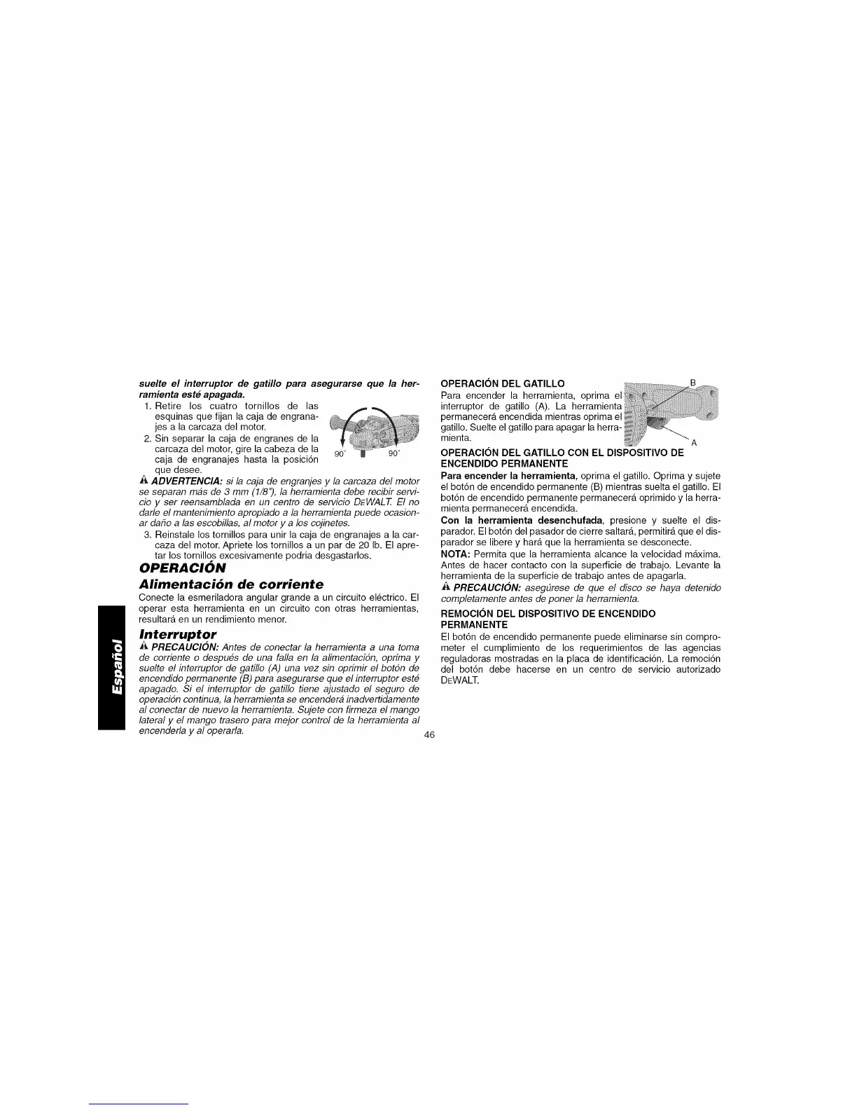 cio y ser reensamblada en un centro de servicio DEWALT. El no