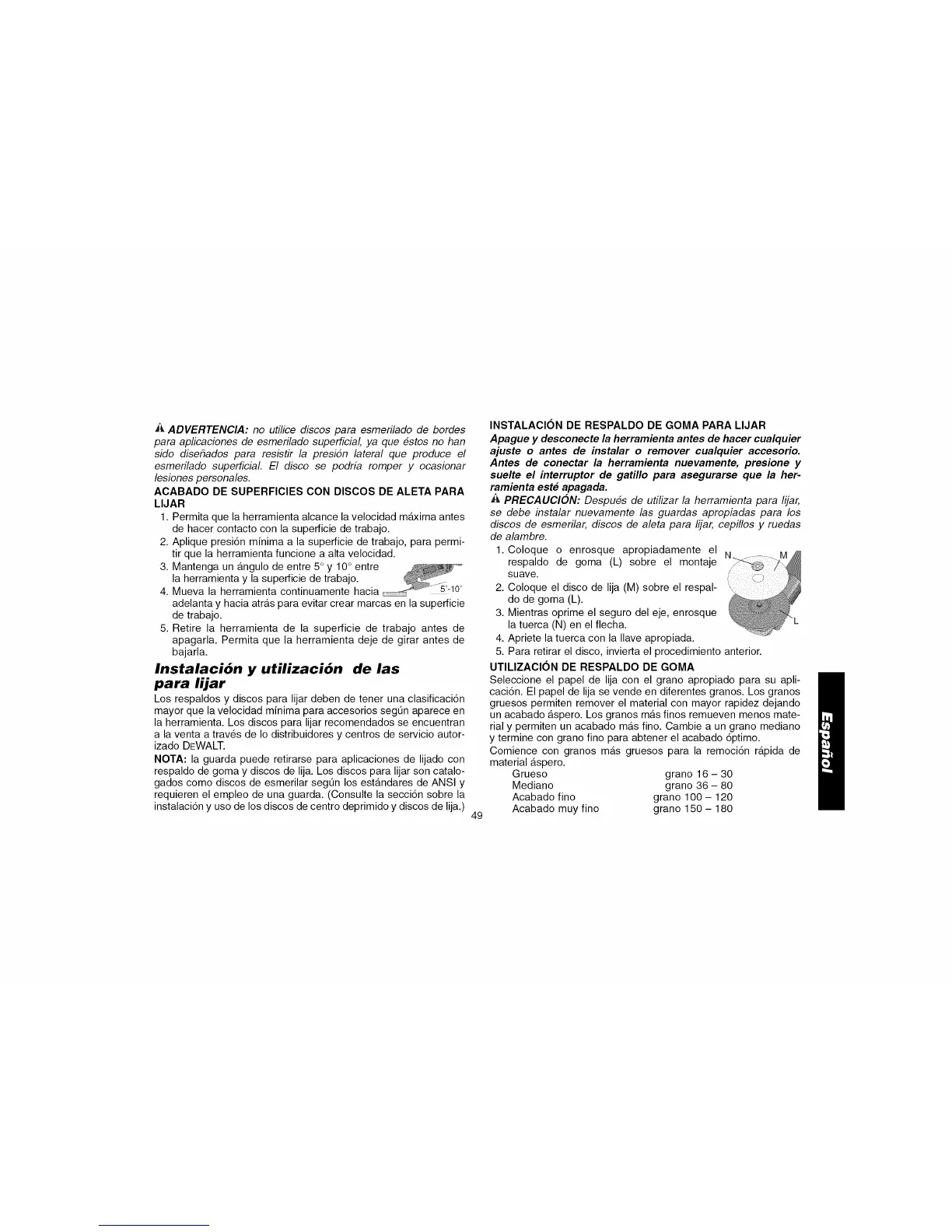 instalaci6n y uso de los discos de centro deprimido y discos de lija.)