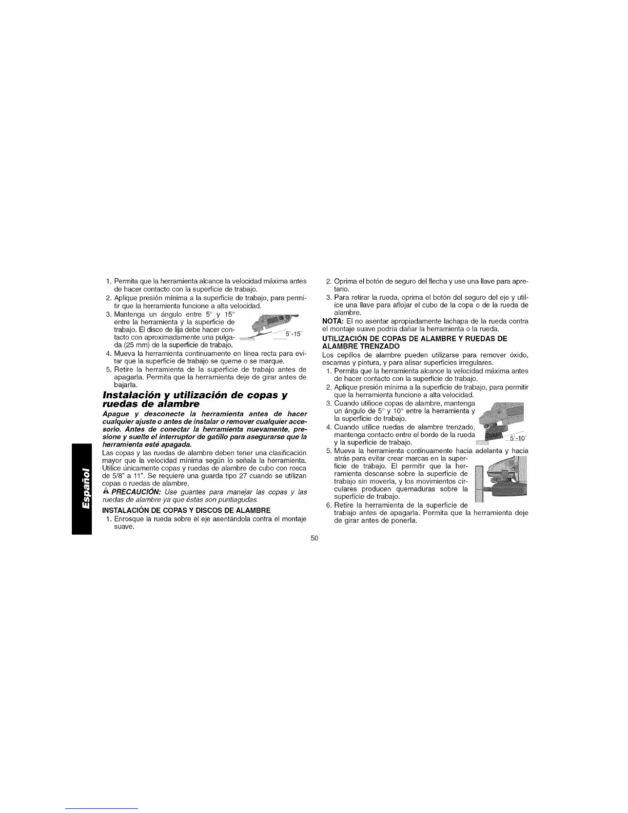 4. Cuando utilice ruedas de alambre trenzado,
