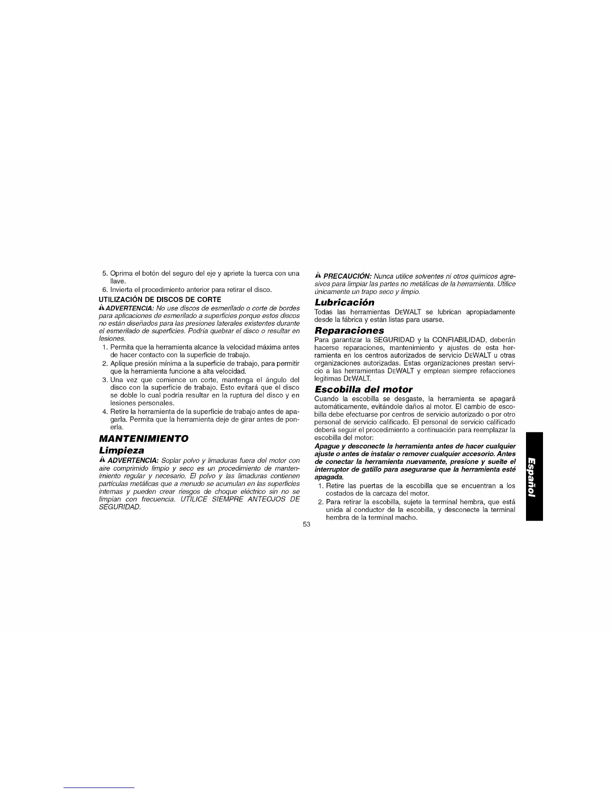 _ADVERTENCIA: No use discos de esmerilado o corte de bordes