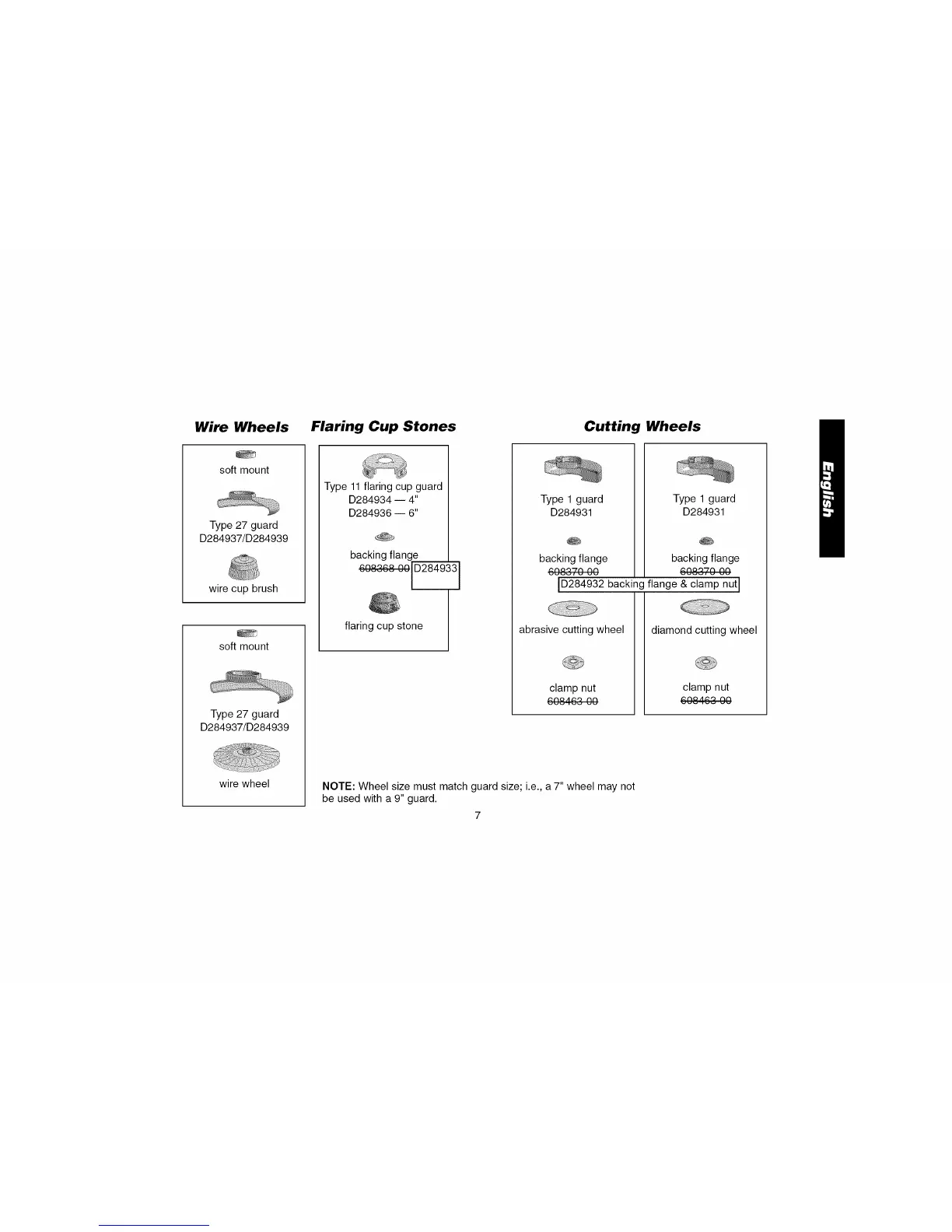 NOTE: Wheel size must match guard size; i.e., a 7" wheel may not