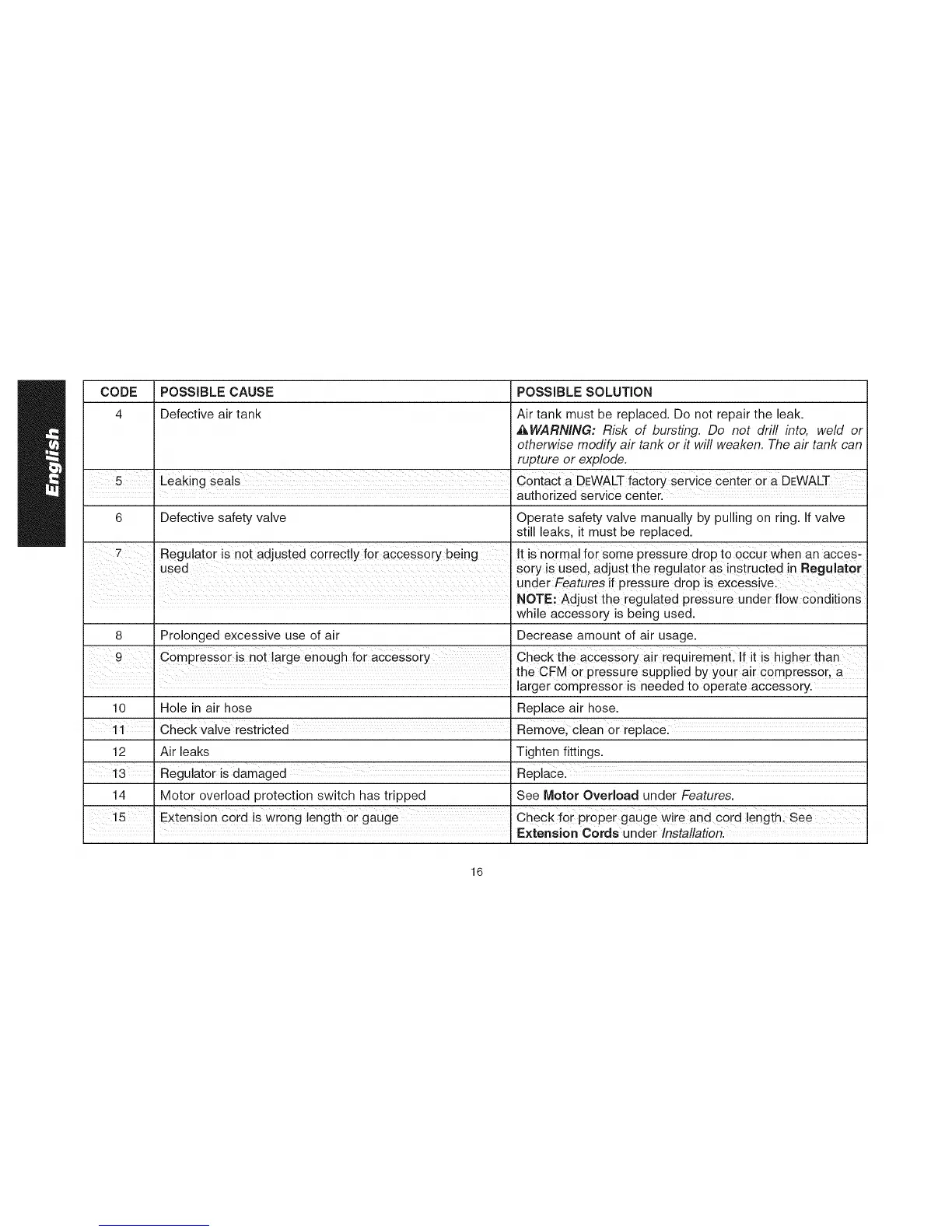 5 Leaking seals Contact a DEWALT fact0ry Service center or a DEWALT