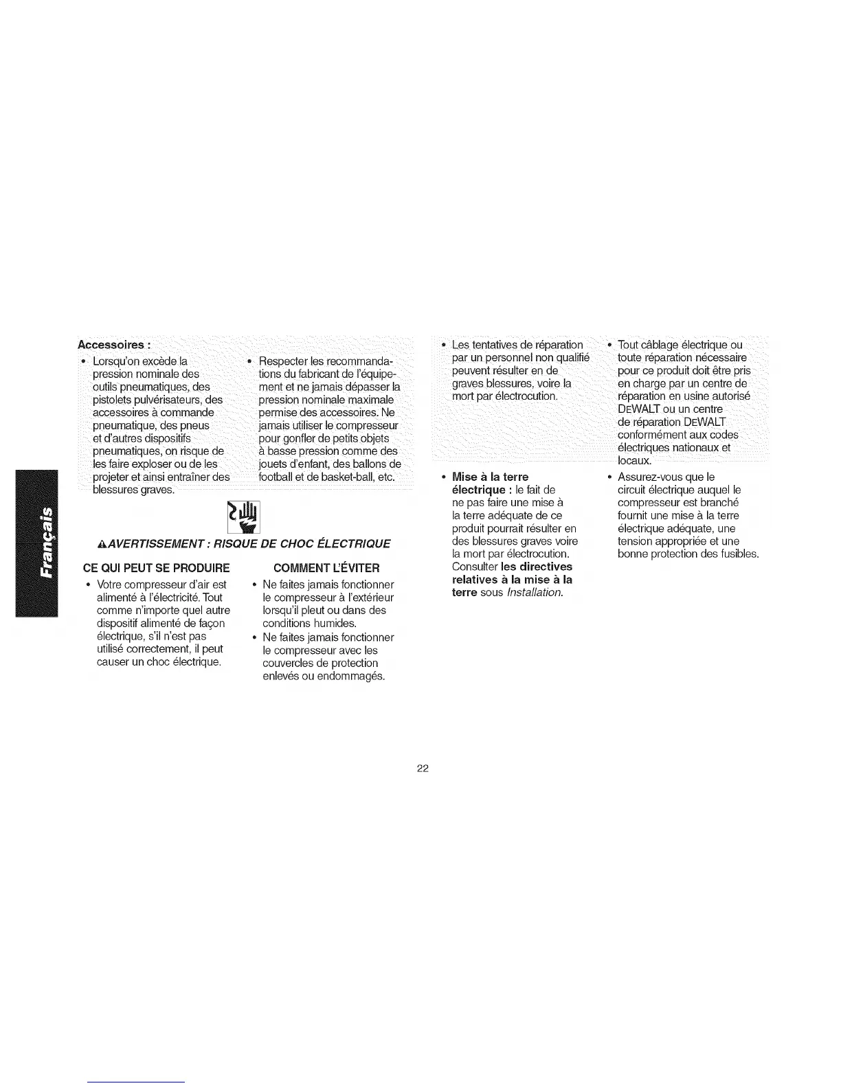 &AVERTISSEMENT : RISQUE DE CHOC ELECTRIQUE