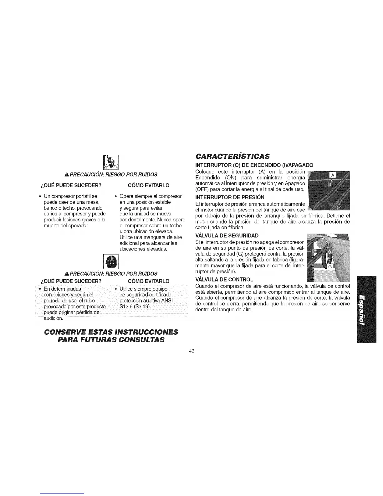 de control se cierra, permitiendo que la presi6n de aire se conserve
