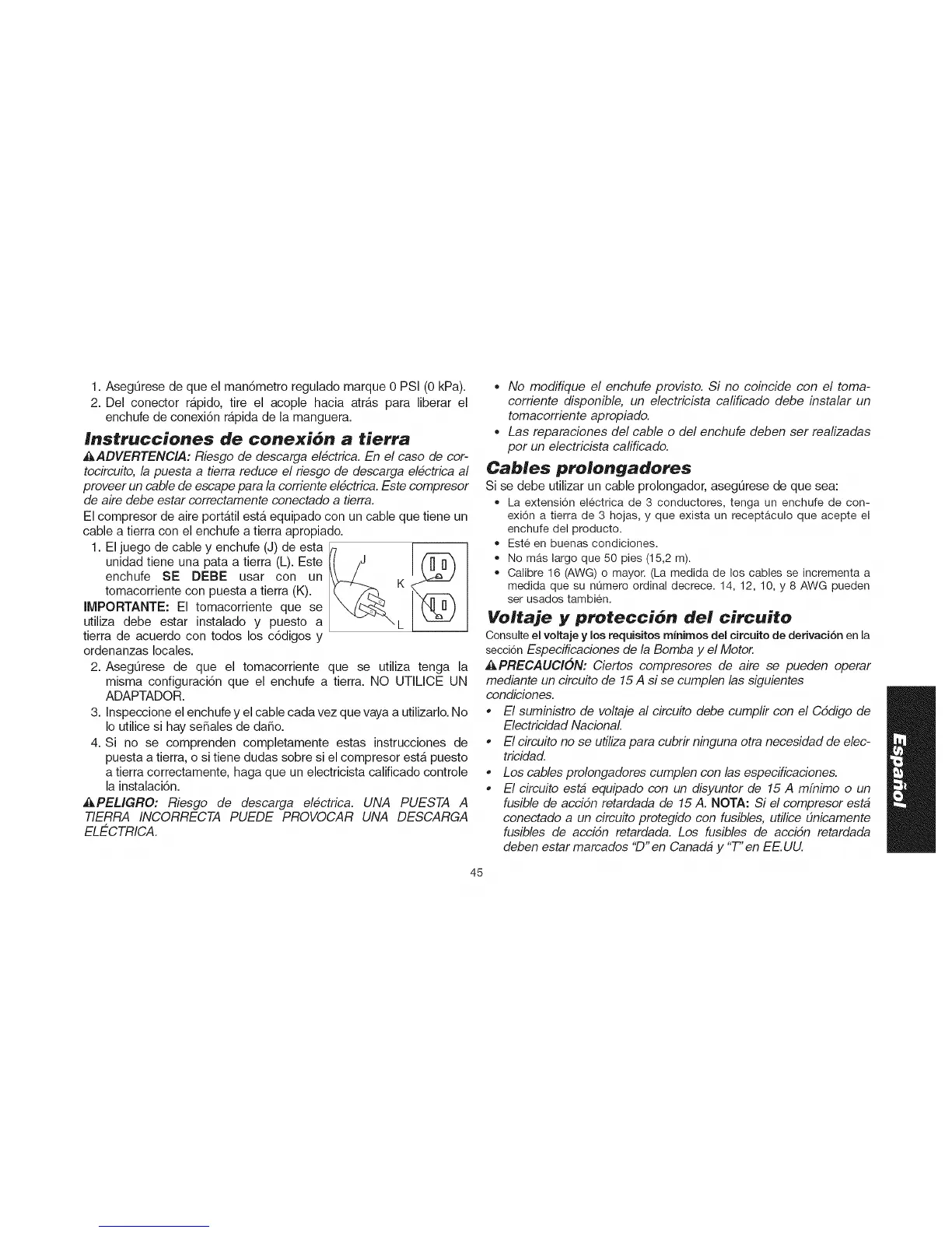 • La extensi6n el6ctrica de 3 conductores, tenga un enchufe de con-