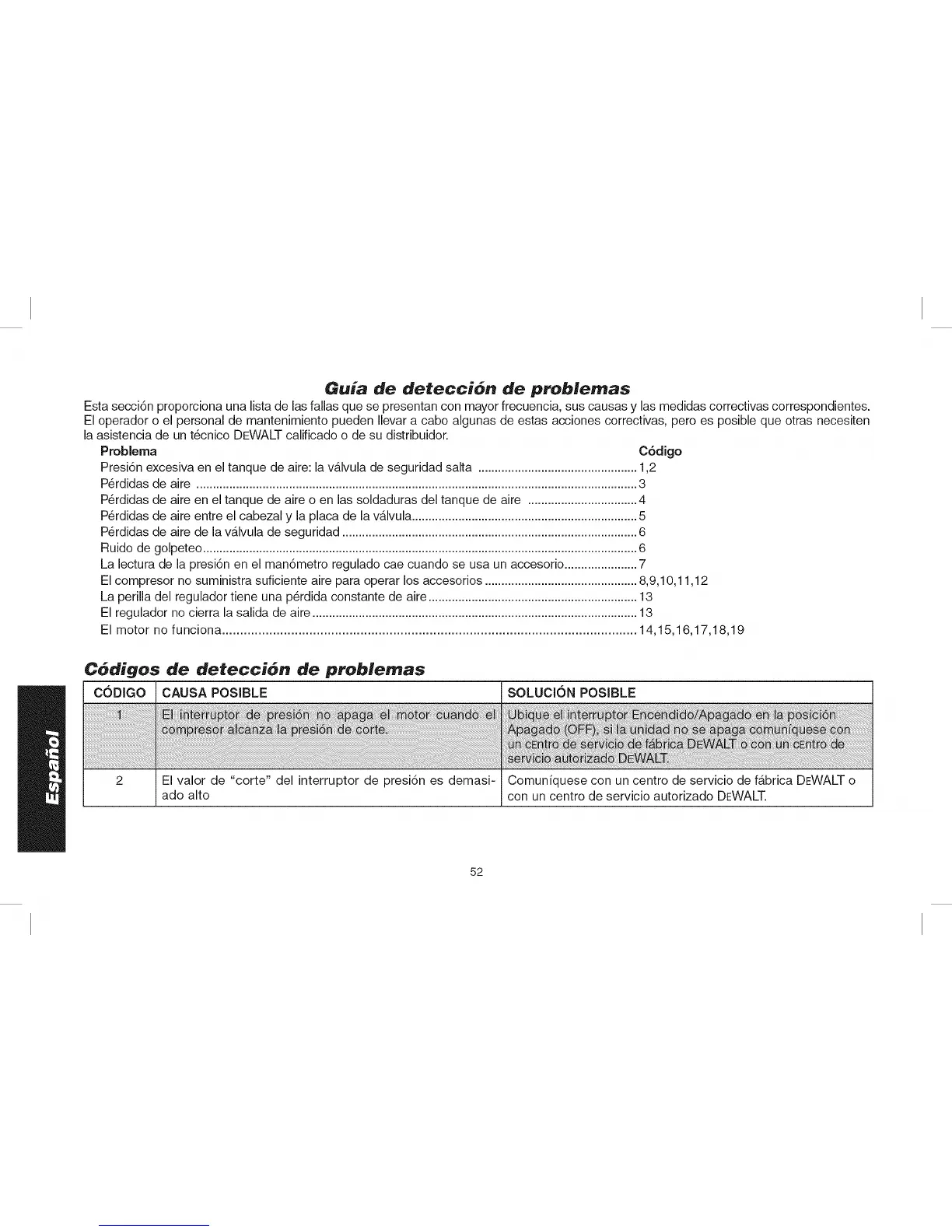 El compresor no suministra suficiente aire para operar los accesorios .............................................. 8,9,10,11,12