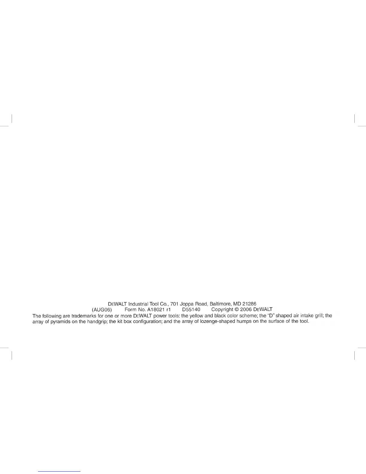 (AUG06) Form No. A18021 rl D55140 Copyright © 2006 DEWALT