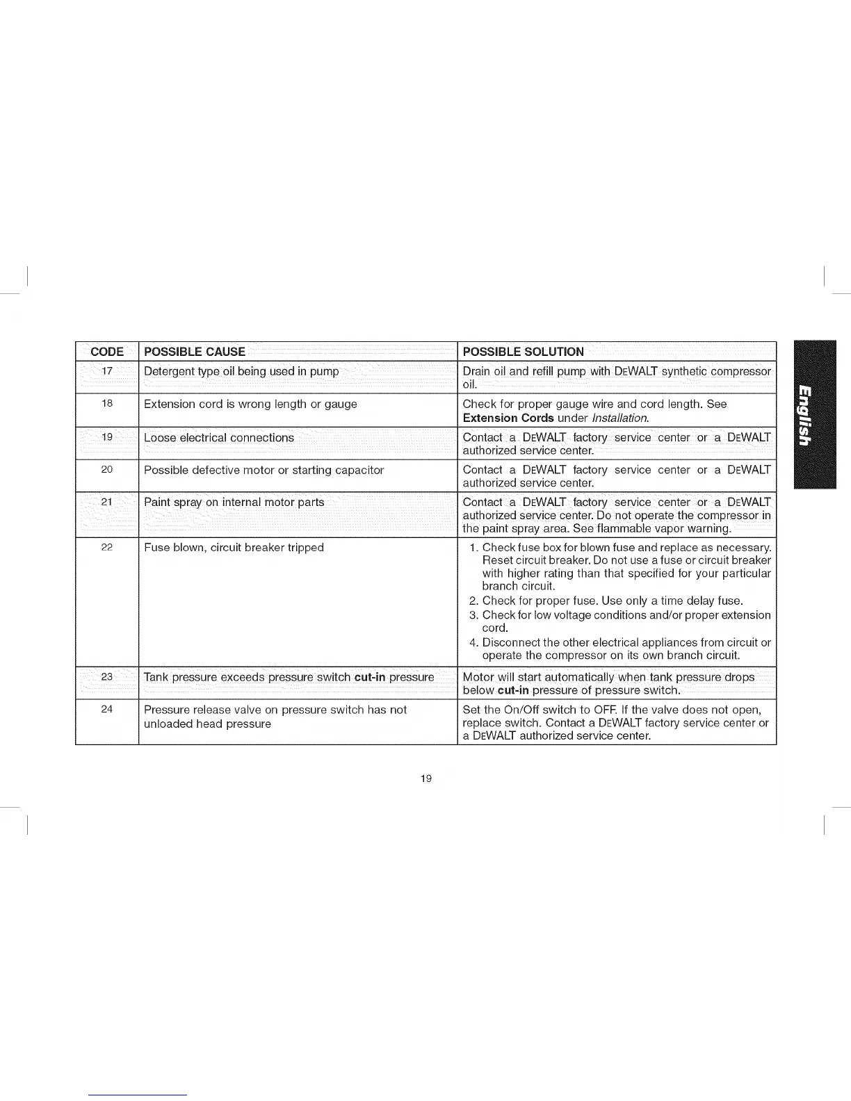 21 Paint spiay 0n internal motor parts Contact a DEWALT faCt0rY Seivice Centei a DEWALT