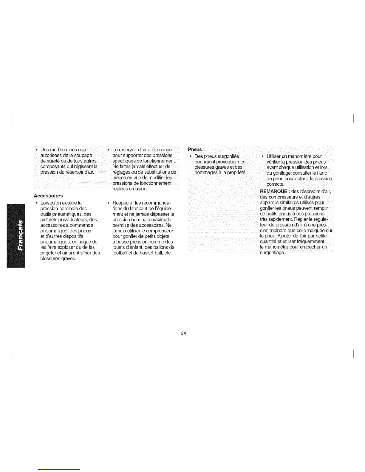 • Des modifications non * Le r6servoir d'air a _t_ con£u