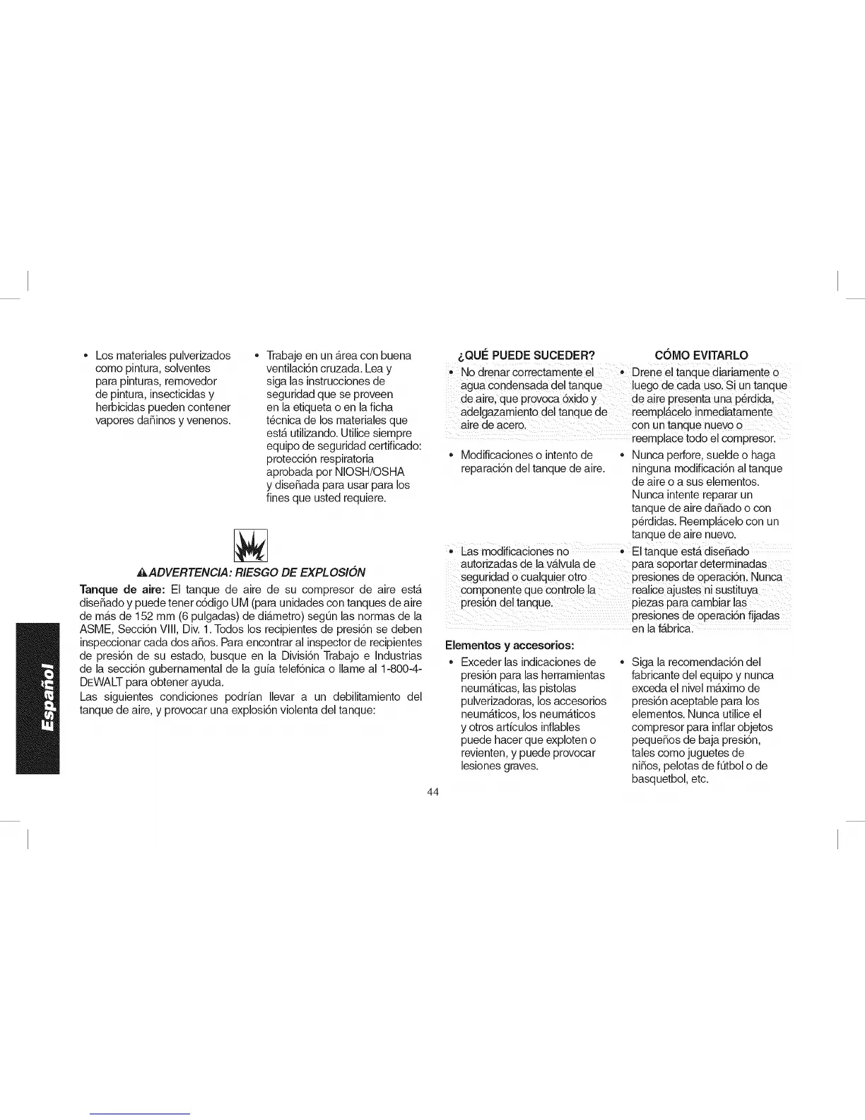 tanque de aire, y provocar una explosi6n violenta del tanque: