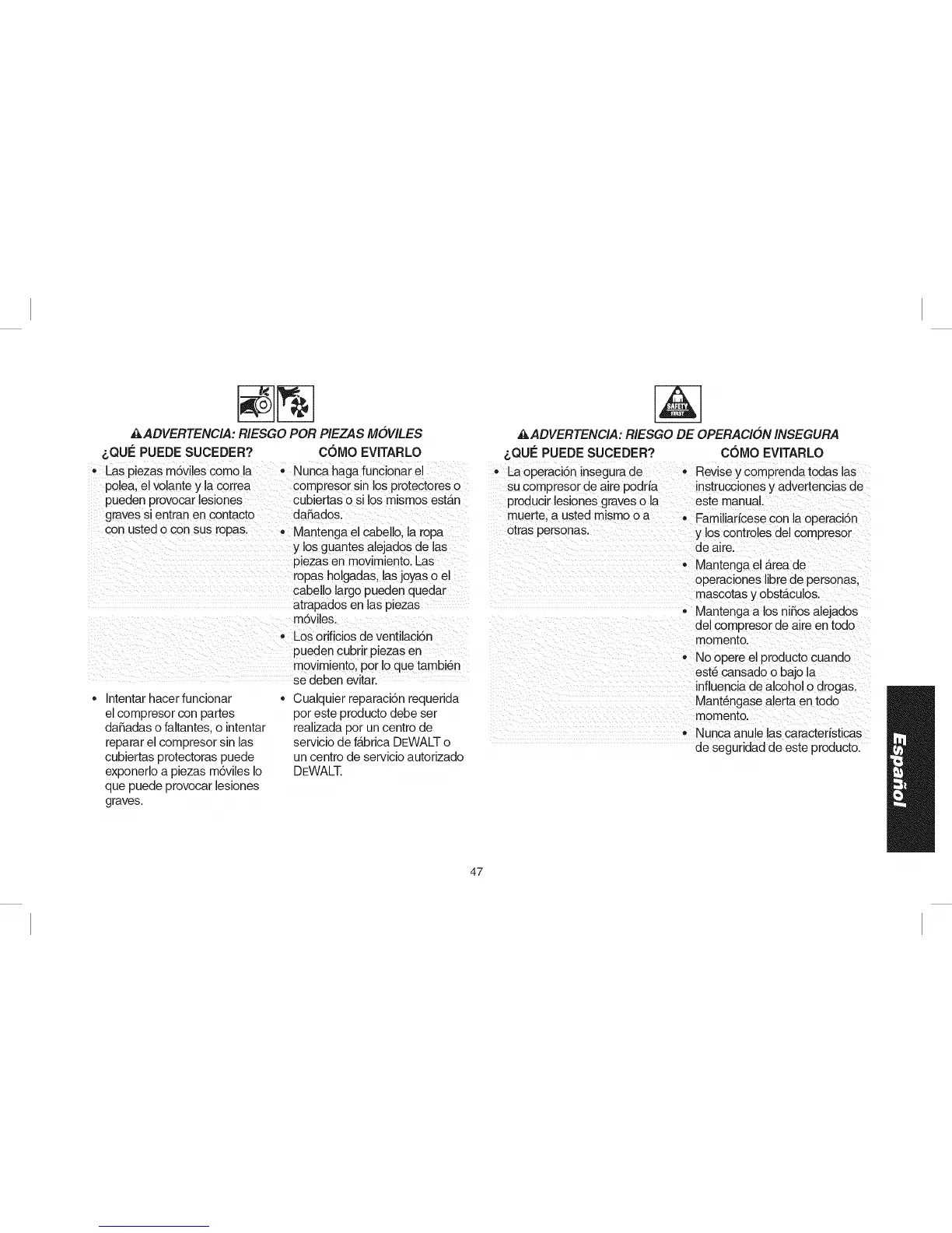 su compresor de aire podria instrucciones y advertencias de