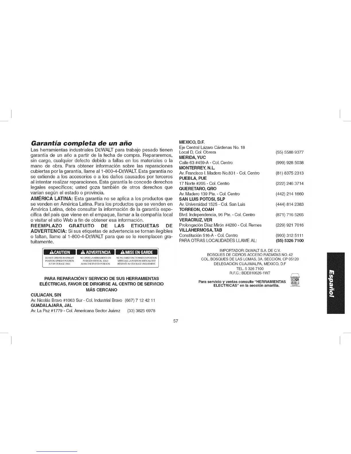IMPORTADOR: DEWALT S.A. DE C.V.