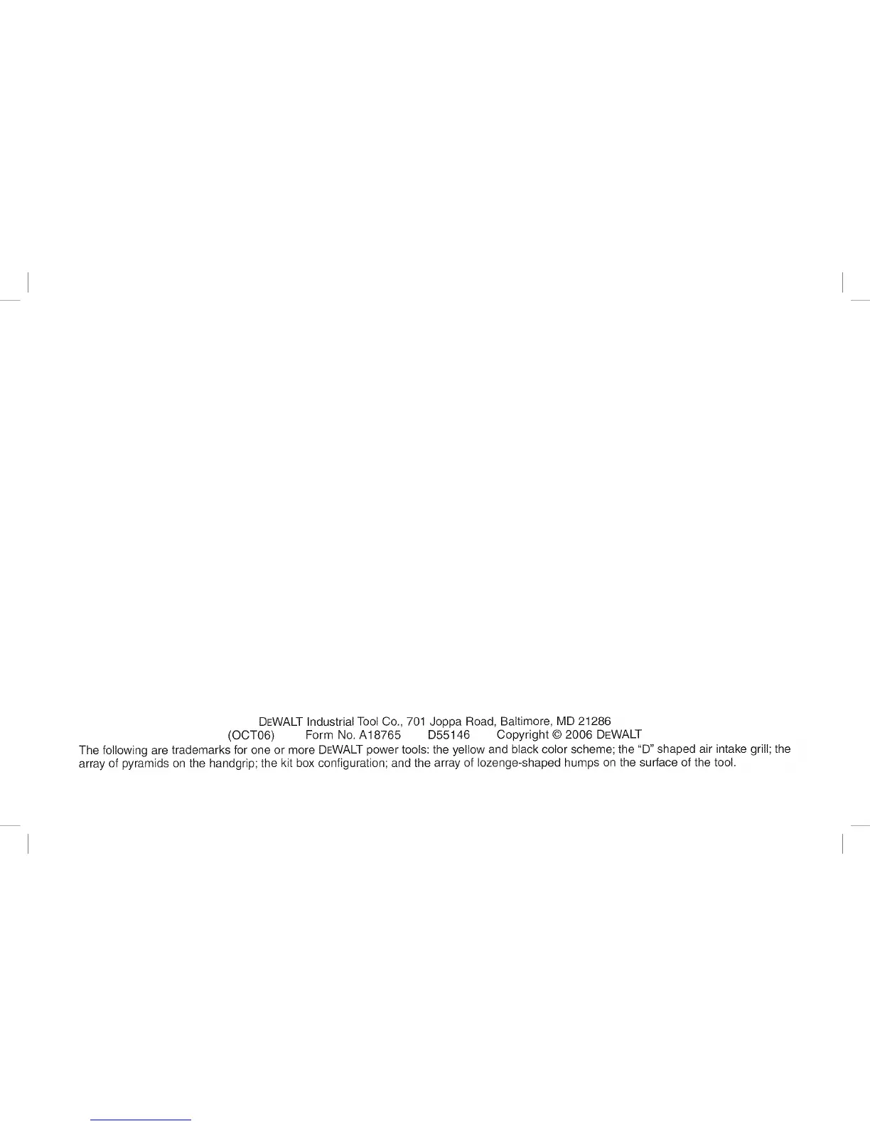 (OCT06) Form No. A18765 D55146 Copyright © 2006 DEWALT