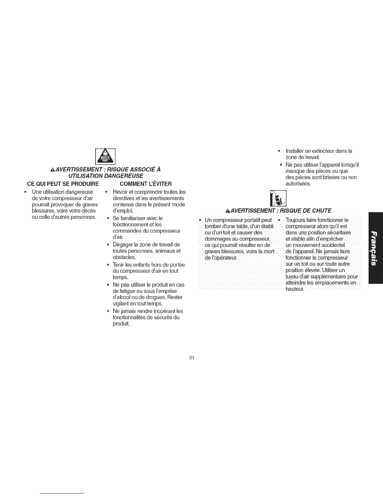 Un compresseur portatif peut • Toujours faire fonctionner le