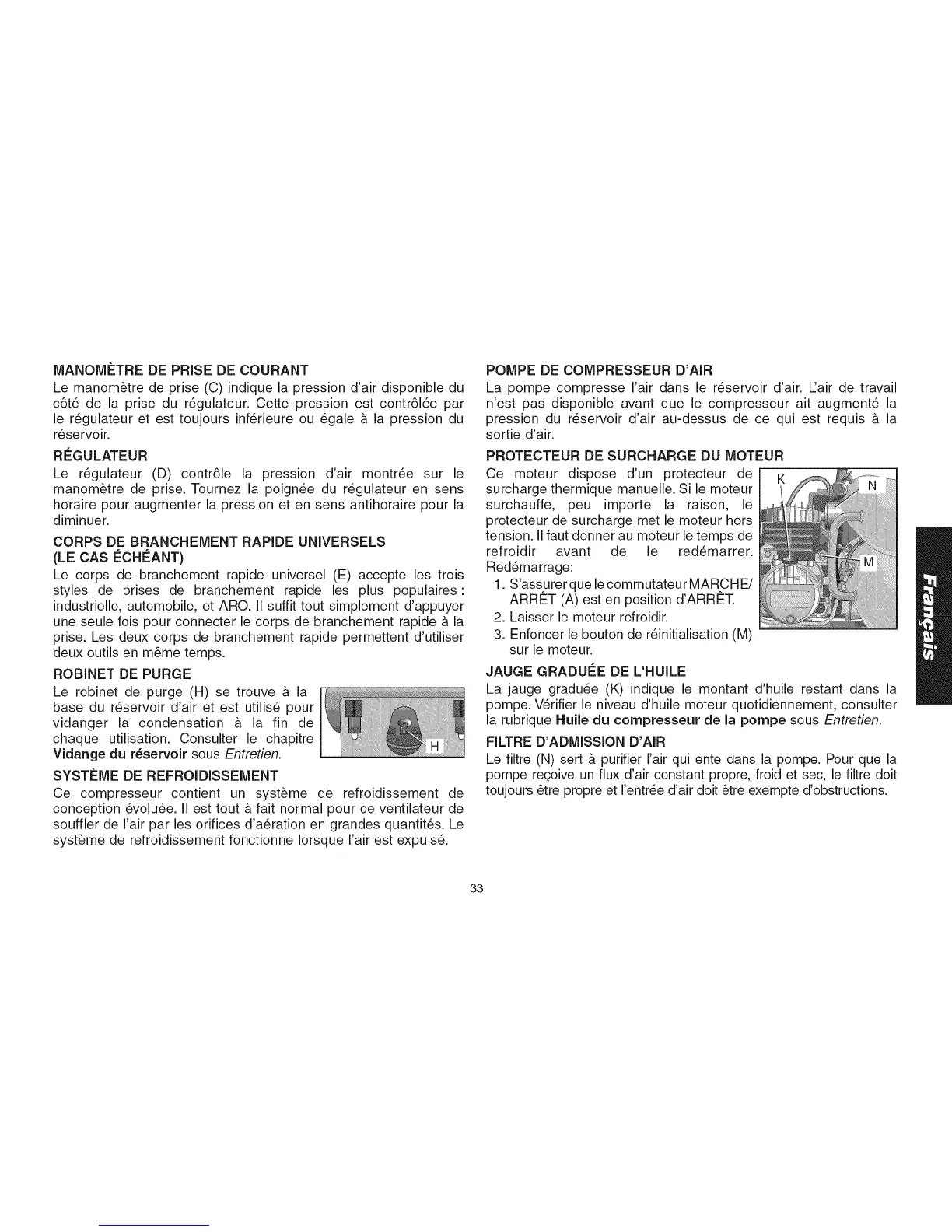 Le r6gulateur (D) contrSle la pression d'air montr6e sur le