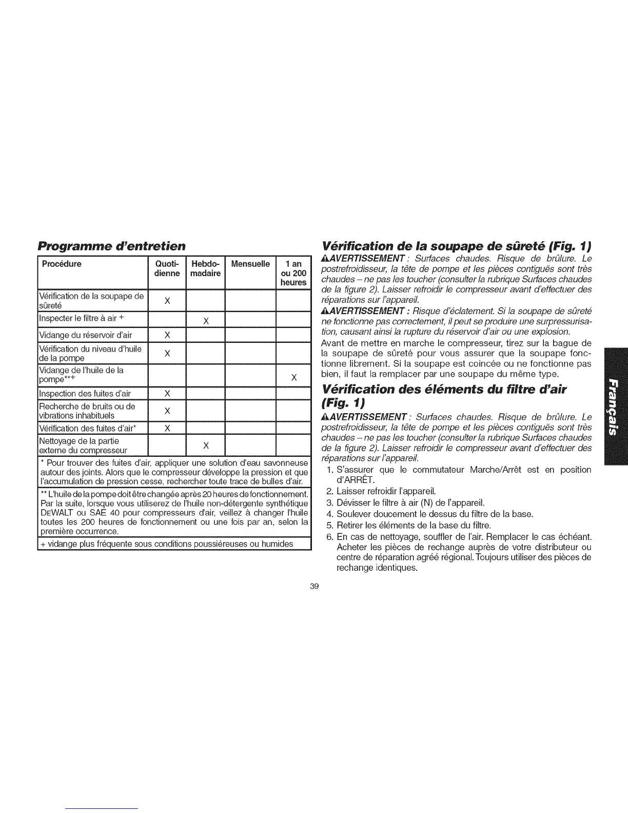 DEWALT ou SAE 40 pour compresseurs d'air, veillez b. changer I'huile