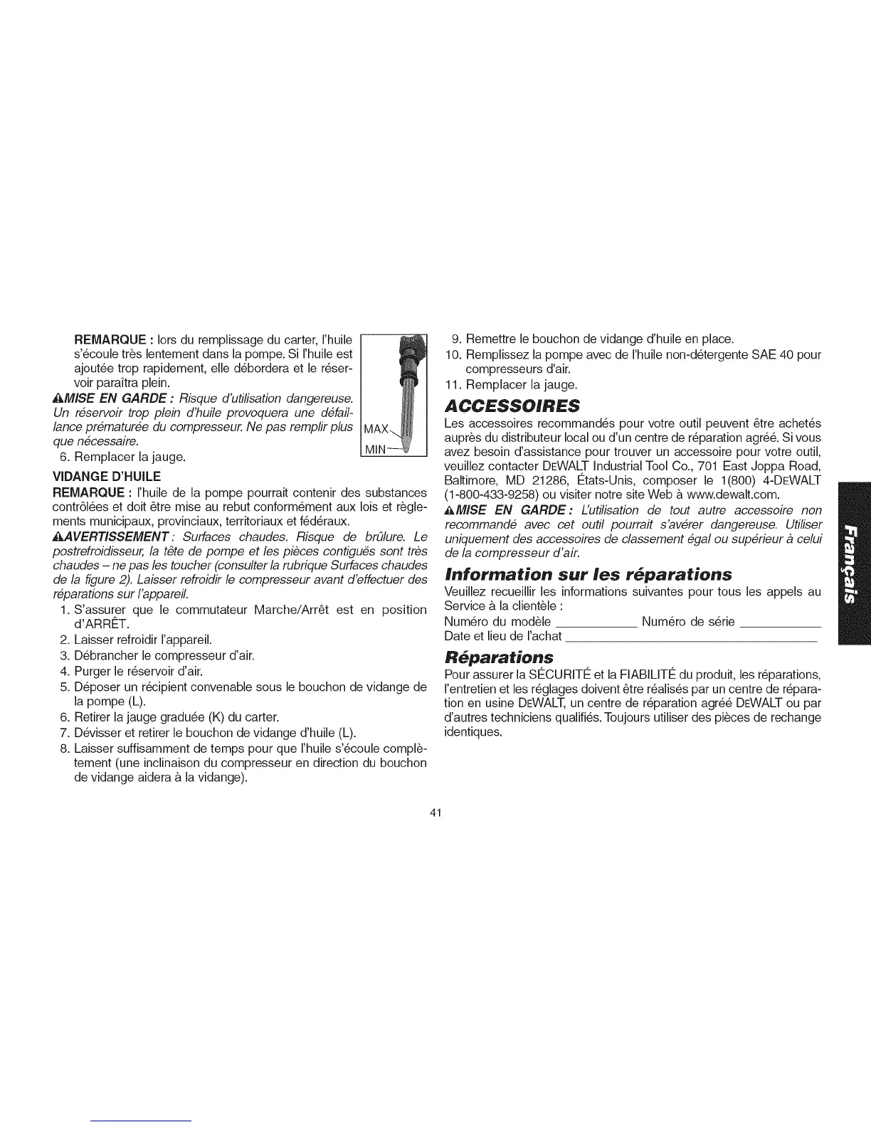(1-800-433-9258) ou visiter notre site Web & www.dewalt.com.