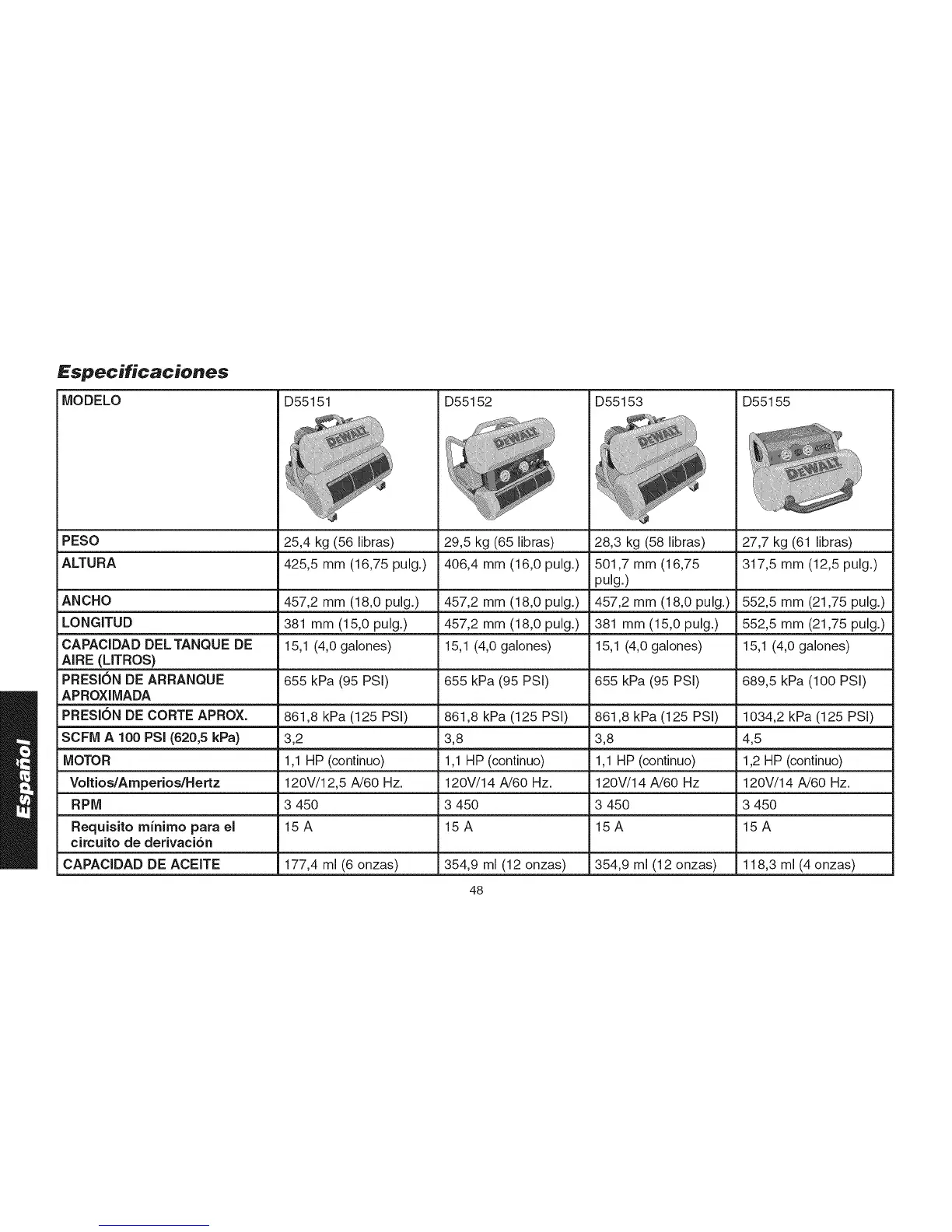 CAPACIDAD DELTANQUE DE 15,1 (4,0 galones) 15,1 (4,0 galones) 15,1 (4,0 galones) 15,1 (4,0 galones)