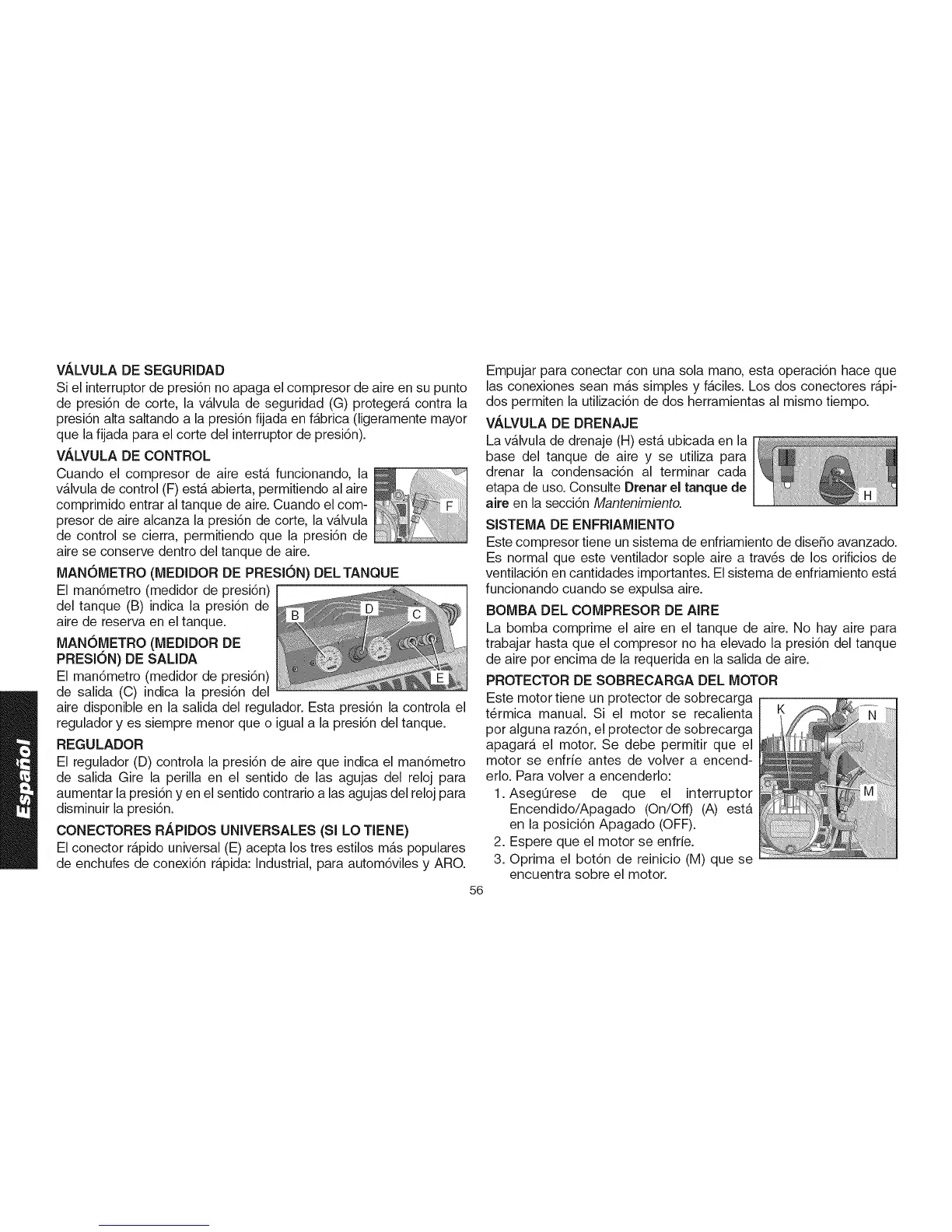 El regulador (D) controla la presi6n de aire que indica el man6metro