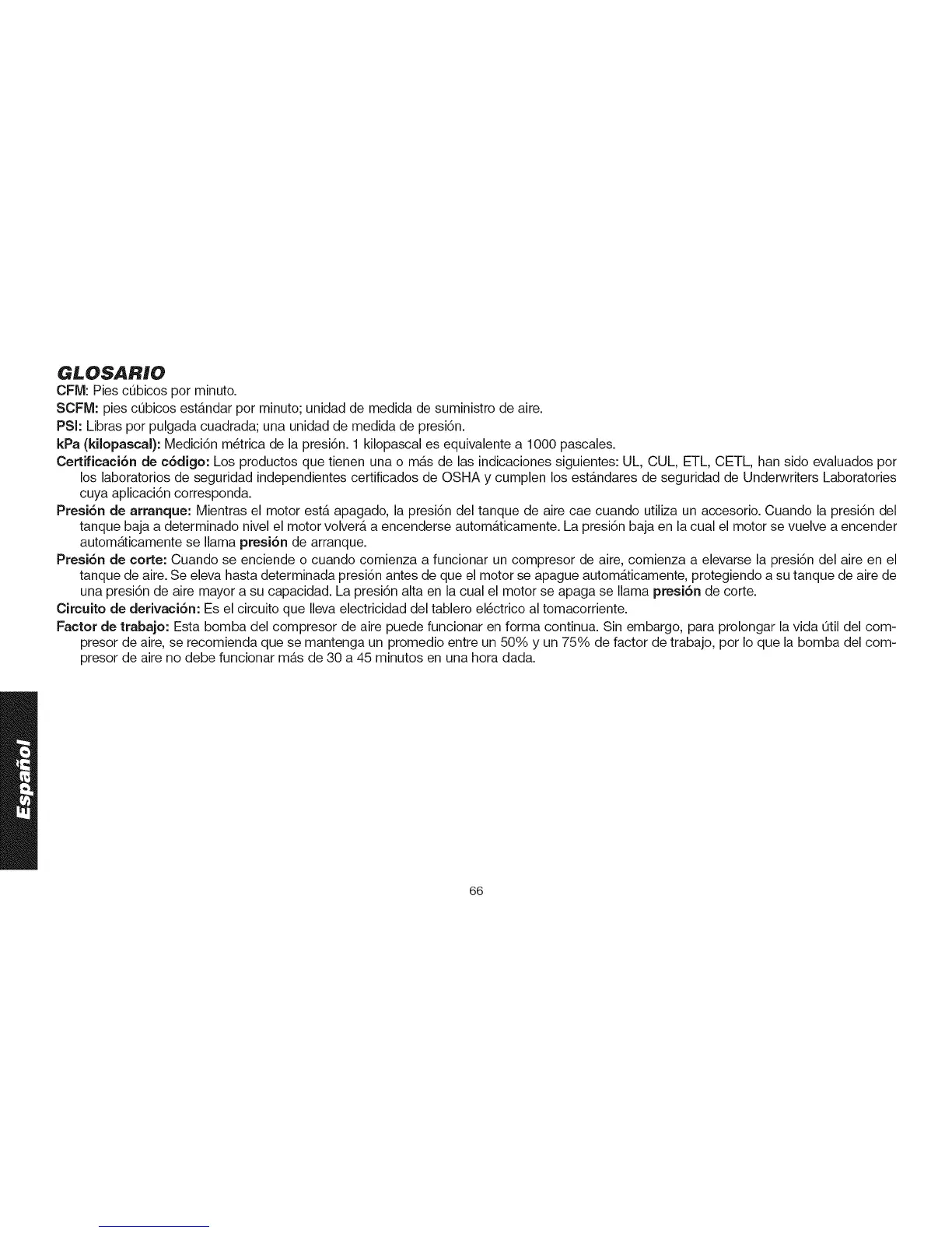Presi6n de arranque: Mientras el motor esta apagado, la presi6n del tanque de aire cae cuando utiliza un accesorio. Cuando la presi6n del