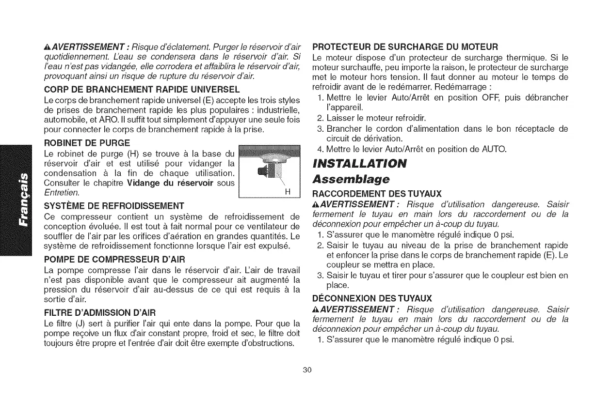 _AVERTISSEMENT : Risque d'6clatement. Purger le r6servoir d'air