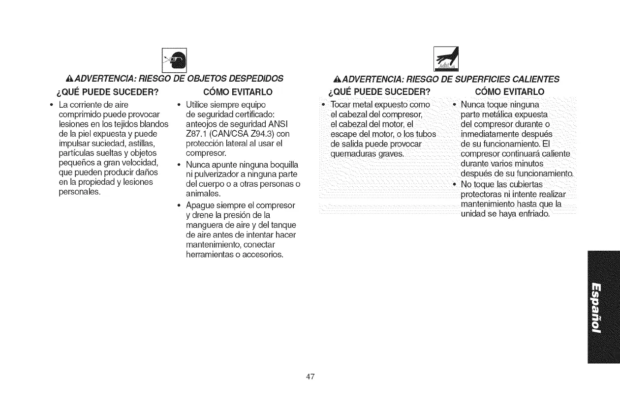 ,&ADVERTENCIA: RIESGO DE OBJETOS DESPEDIDOS