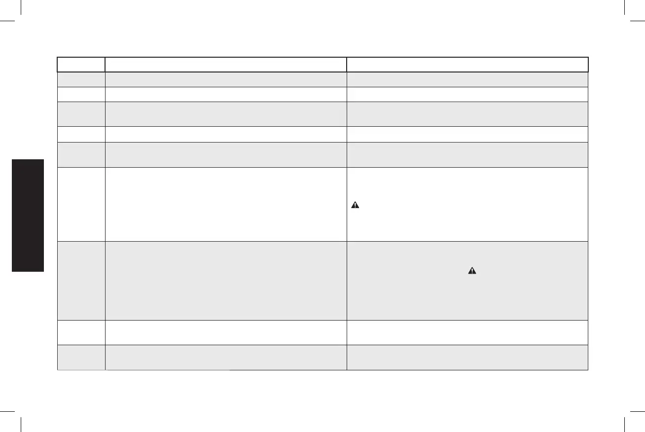 10 Soupape de décompression obstruée Retirer, nettoyer ou remplacer.