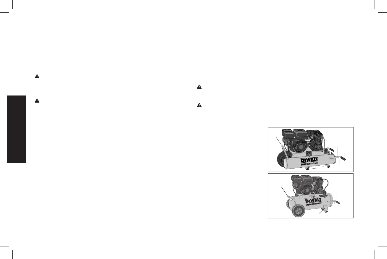 fonctionnement, ne pas incliner le compresseur d’air plus de 10° pour