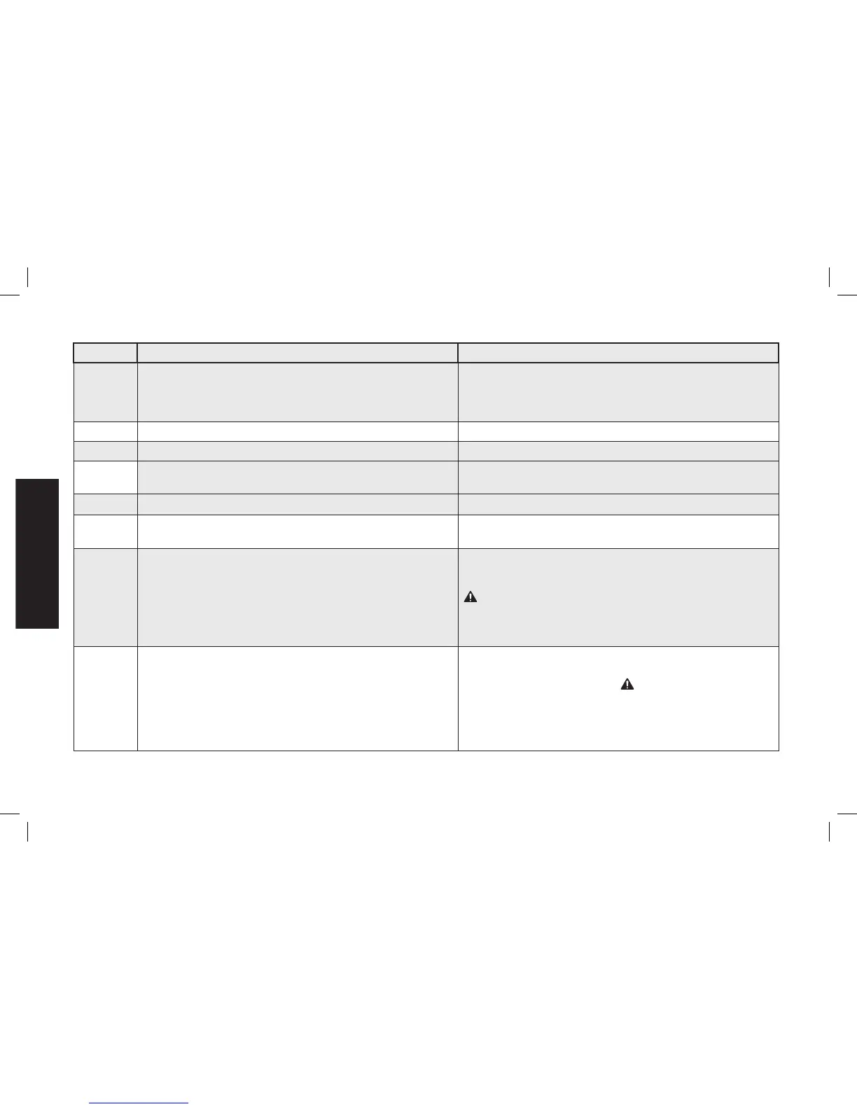 10 Soupape de décompression obstruée Retirer, nettoyer ou remplacer.