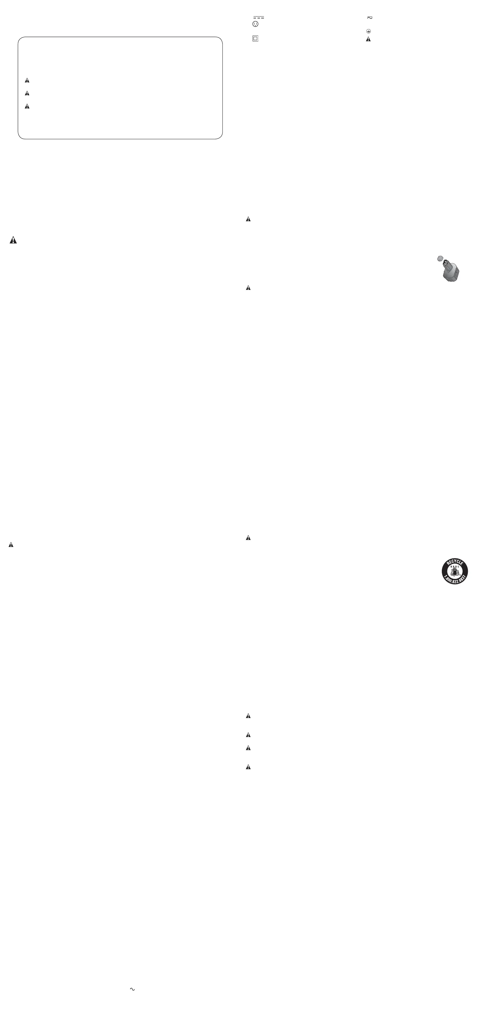 capacité qu’un calibre 18. L’usage d’une rallonge de calibre insuffisant causera une chute