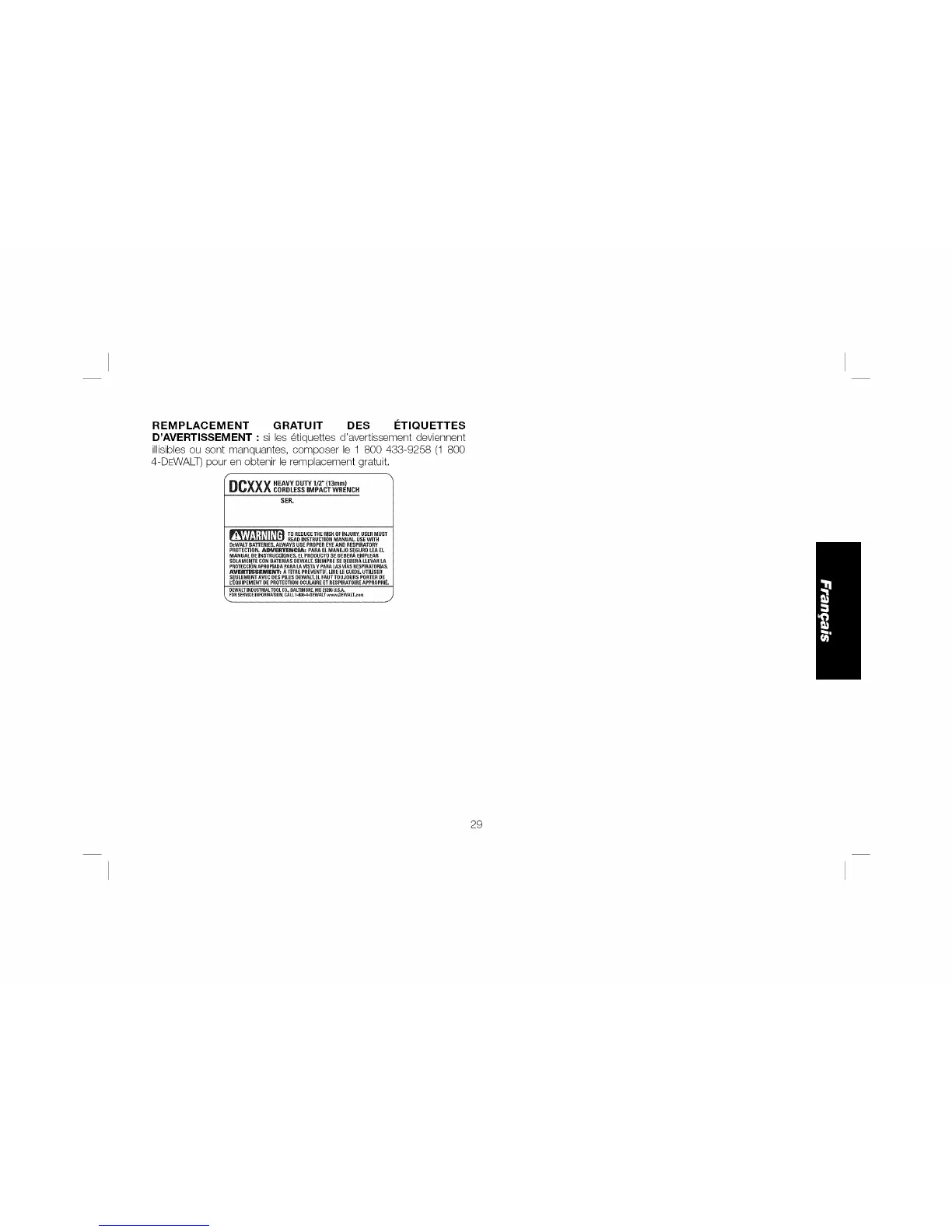 4-DEWALT) pour en obtenir le remplacement gratuit.