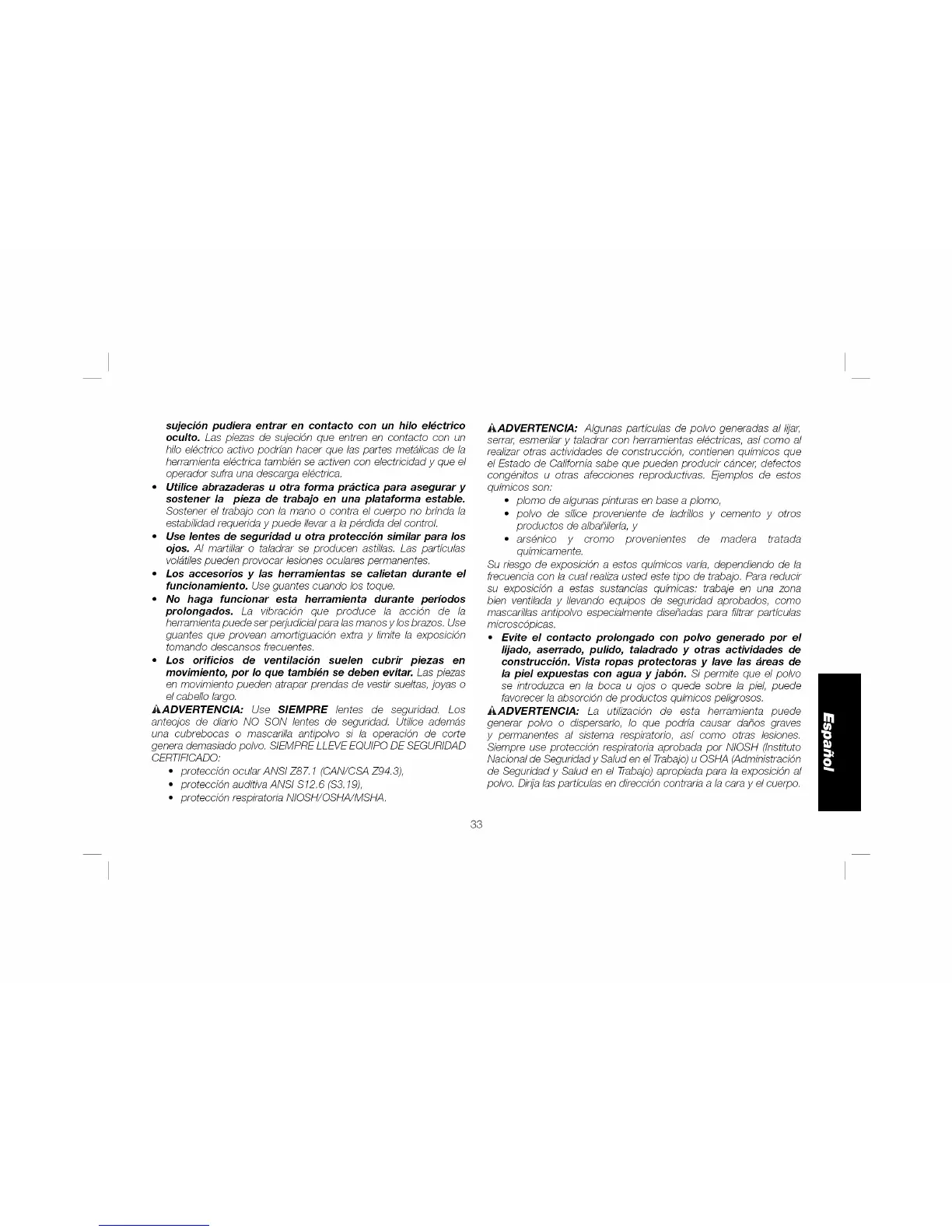 • Use lentes de seguridad u otra proteccion similar para los