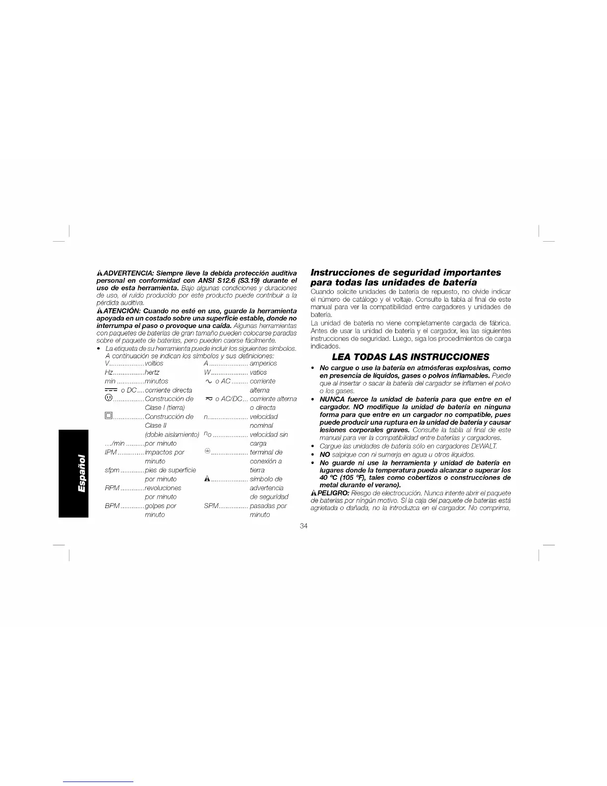 • Cargue las unidades de baterfa s61o en cargadores DEWALT.