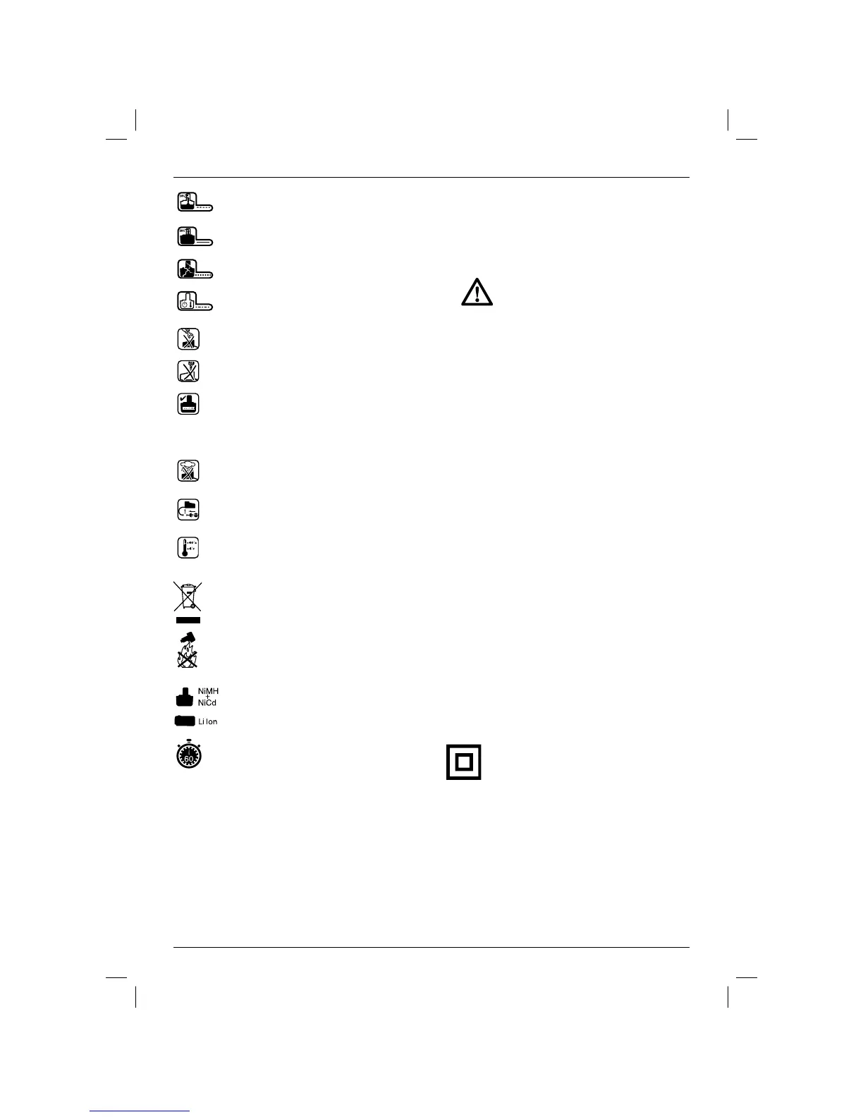 Ikke brenn batteripakken NiMH, NiCd+ og