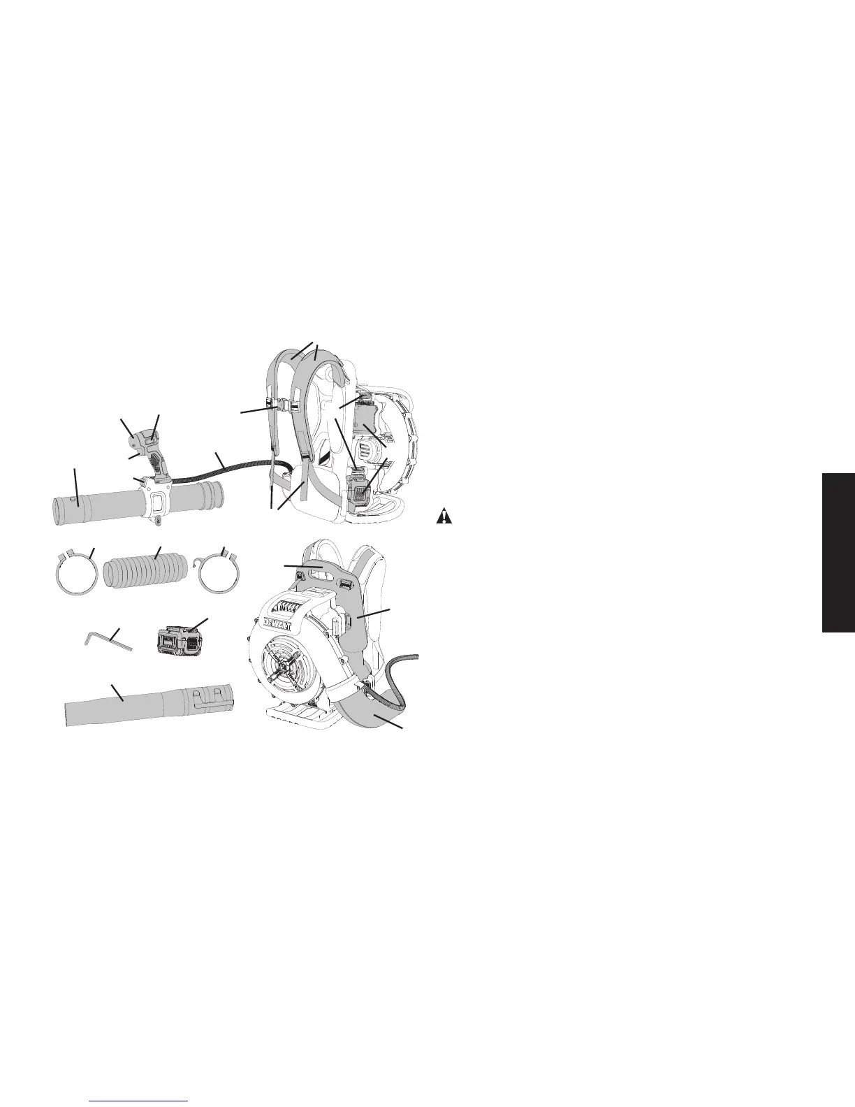 REMARQUE : le souffleur et le kit tuyau du manche sont attachés à la