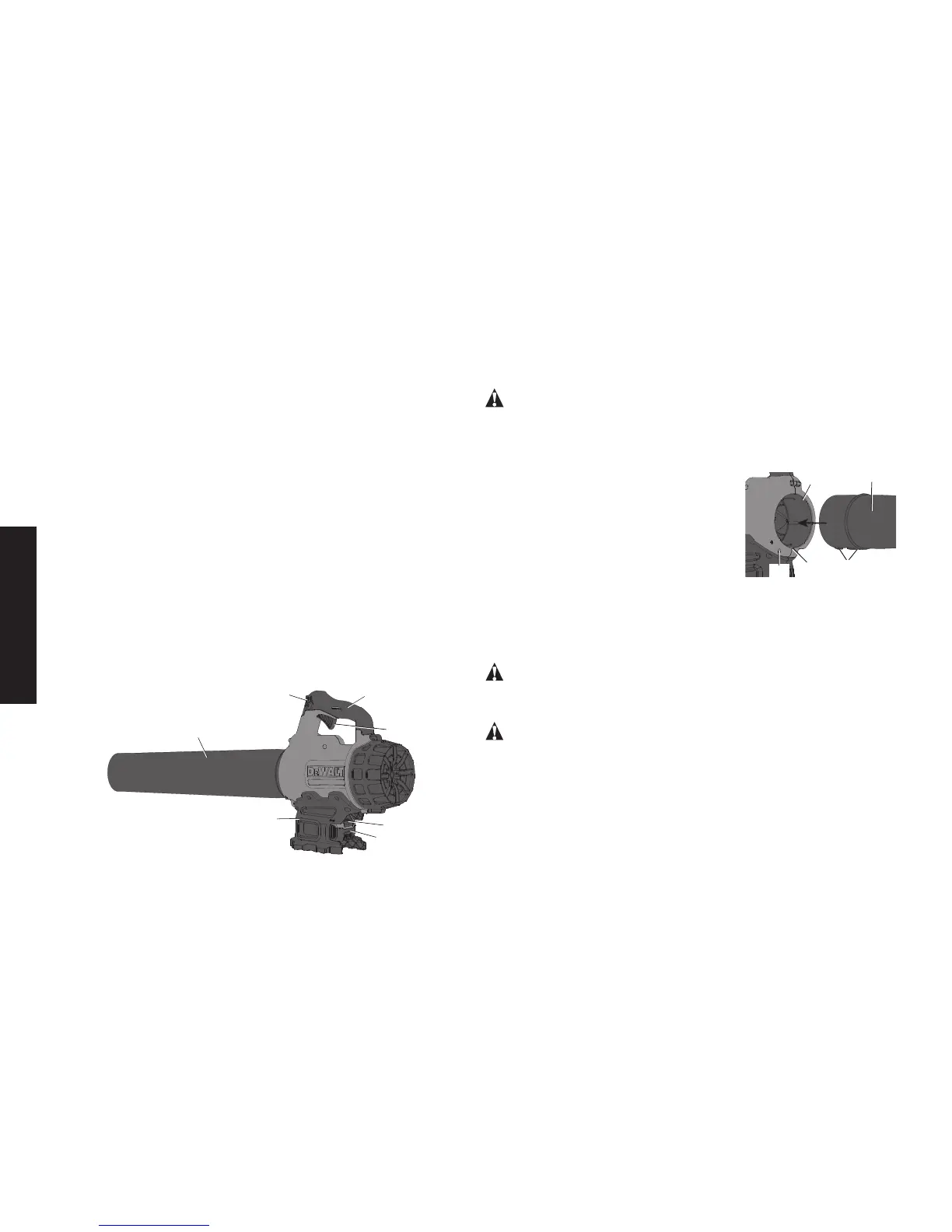 • ASSEMBLAGE DU TUBE: Pour fixer le tube au souffleur, aligner