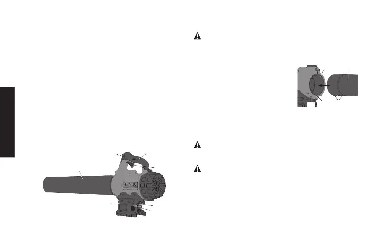 • ASSEMBLAGE DU TUBE: Pour fixer le tube au souffleur, aligner