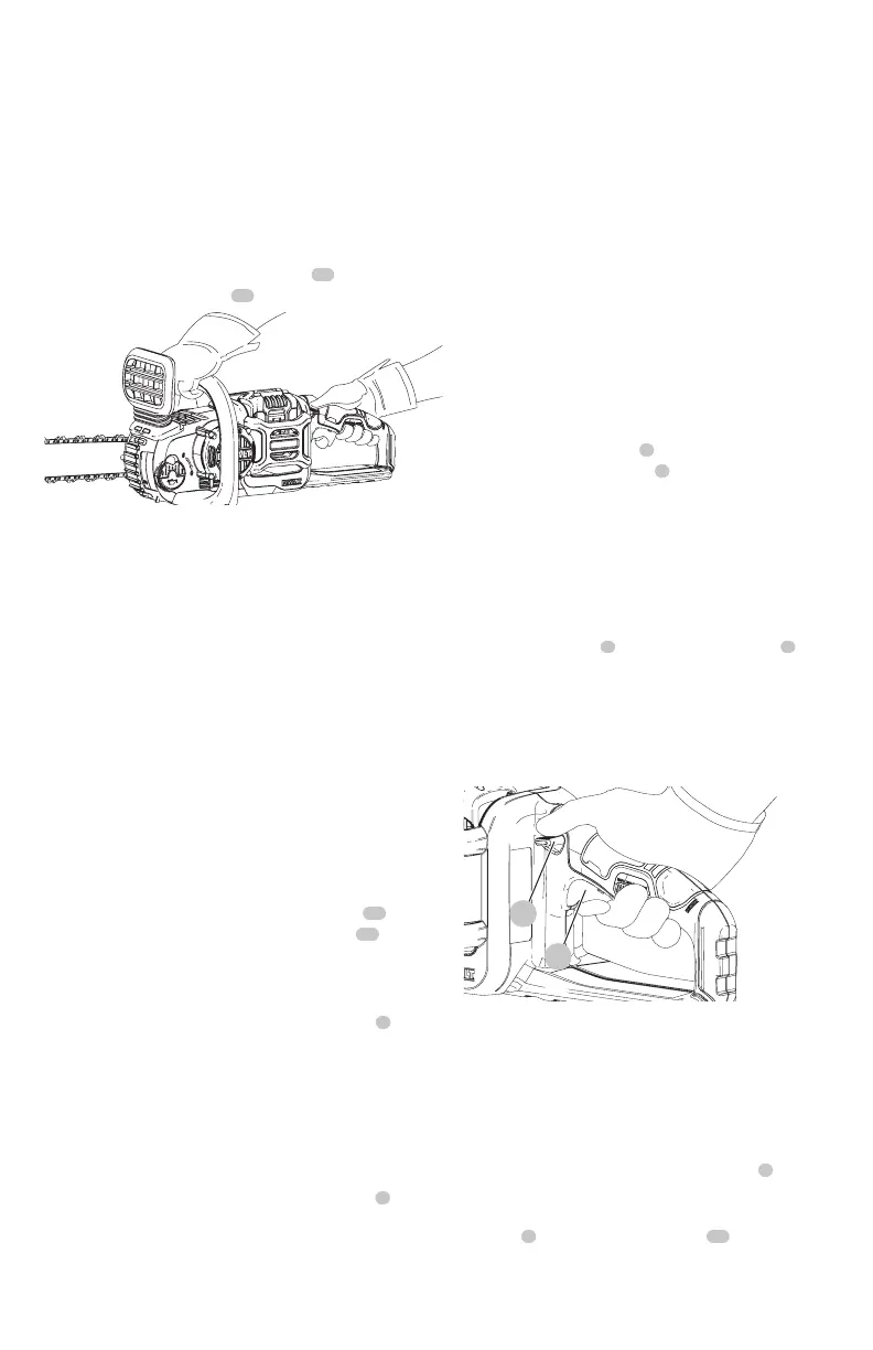 • Para activar el freno de la cadena, empuje el freno de
