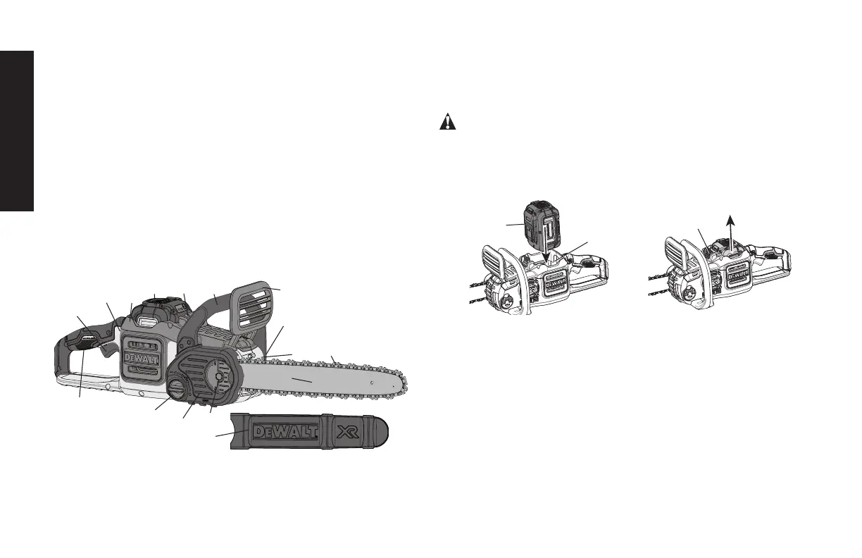 E. Saw chain M. Battery housing
