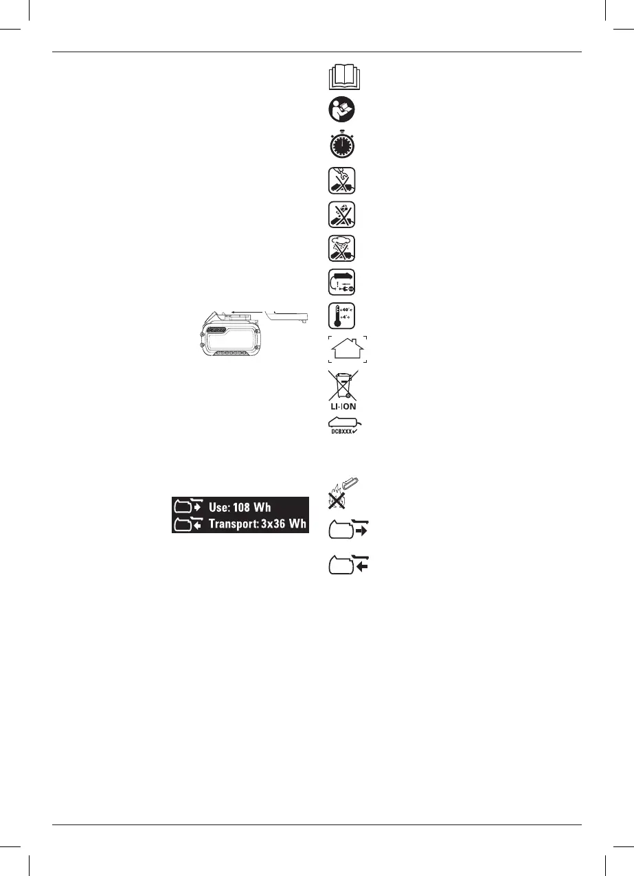 Wh-märkning indikerar 3 x 36 Wh (tre batterier på