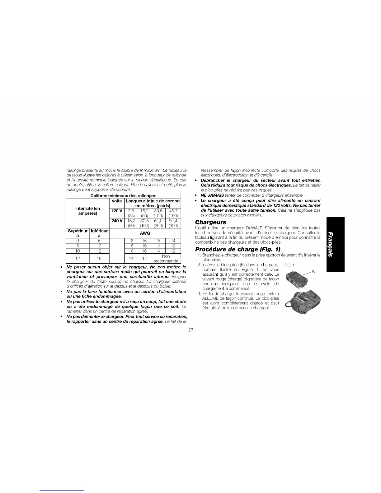 Uoutil utilise un chargeur DEWALT. S'assurer de bien lire toutes