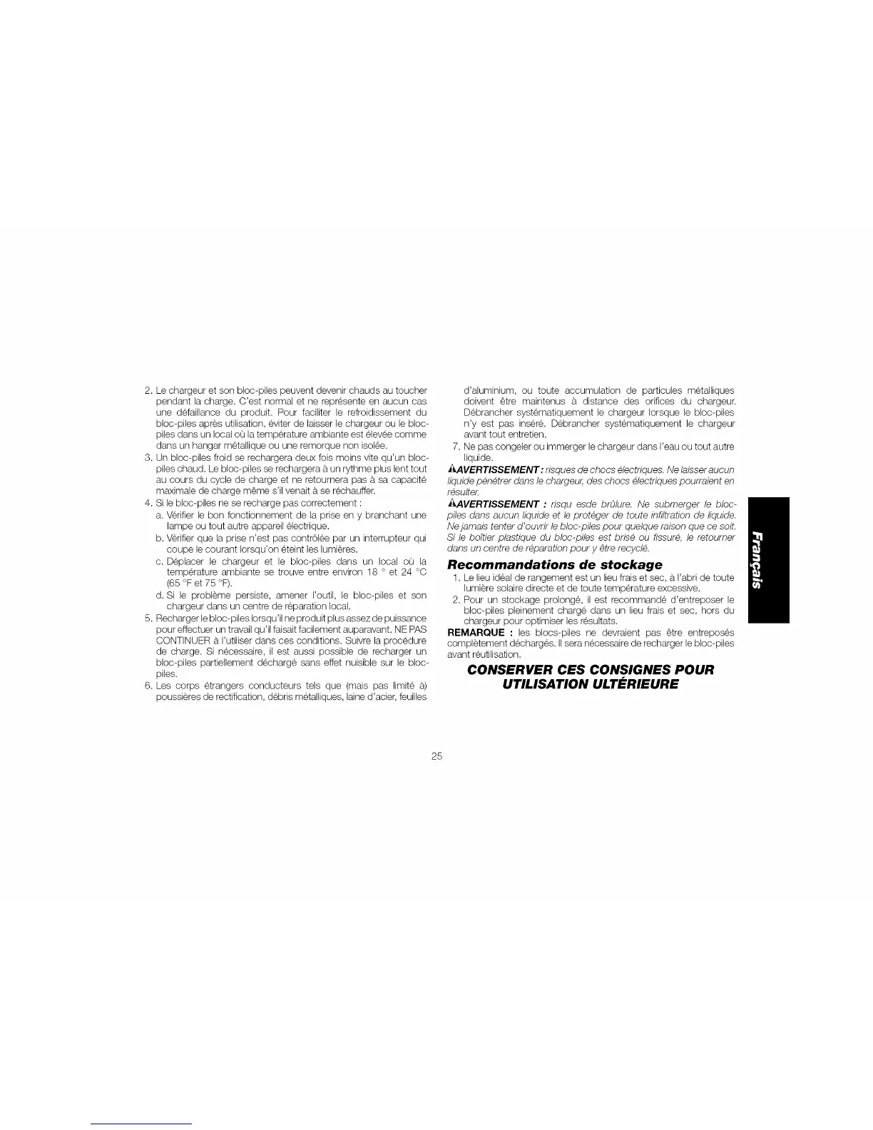 2. Pour un stockage prolonge, il est recommande d'entreposer le
